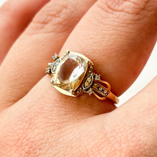 Bar Signet Ring with Clear Stones | 9ct Gold | Size L | 1.8g