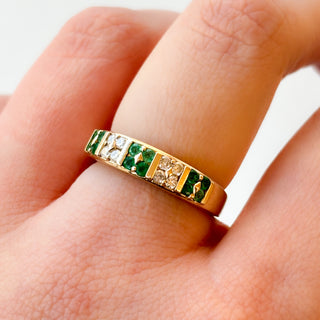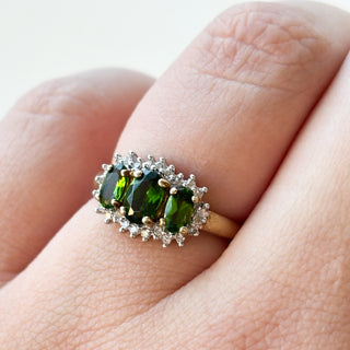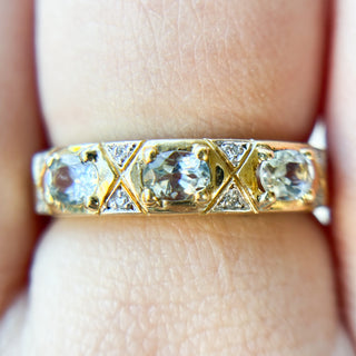 Three-Stone Aquamarine and diamonds Band | 9ct Gold | Size N | 3.18g