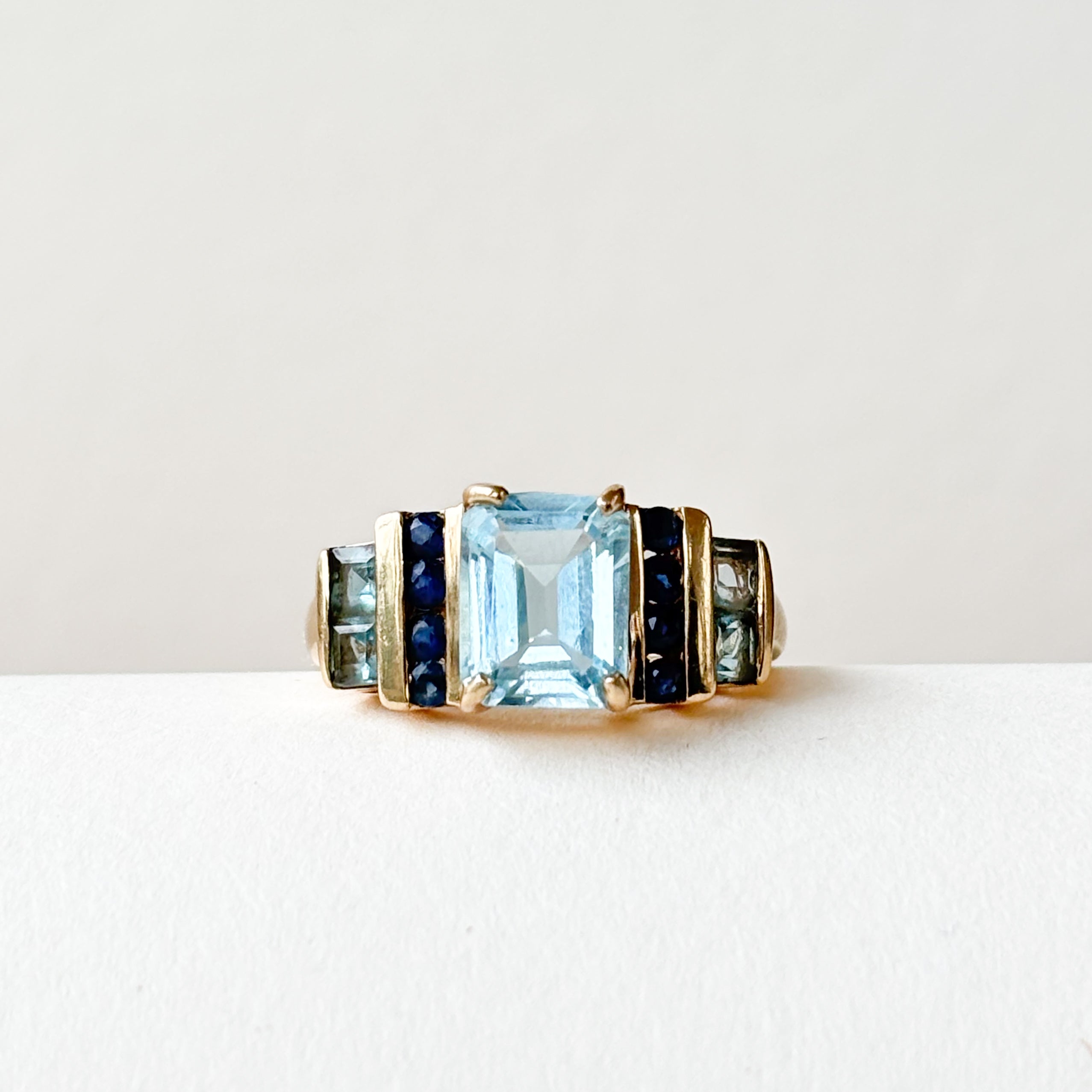 Blue Topaz & Blue Sapphire Natural Accent Ring | 10ct Gold | Size O½ | 4.2g