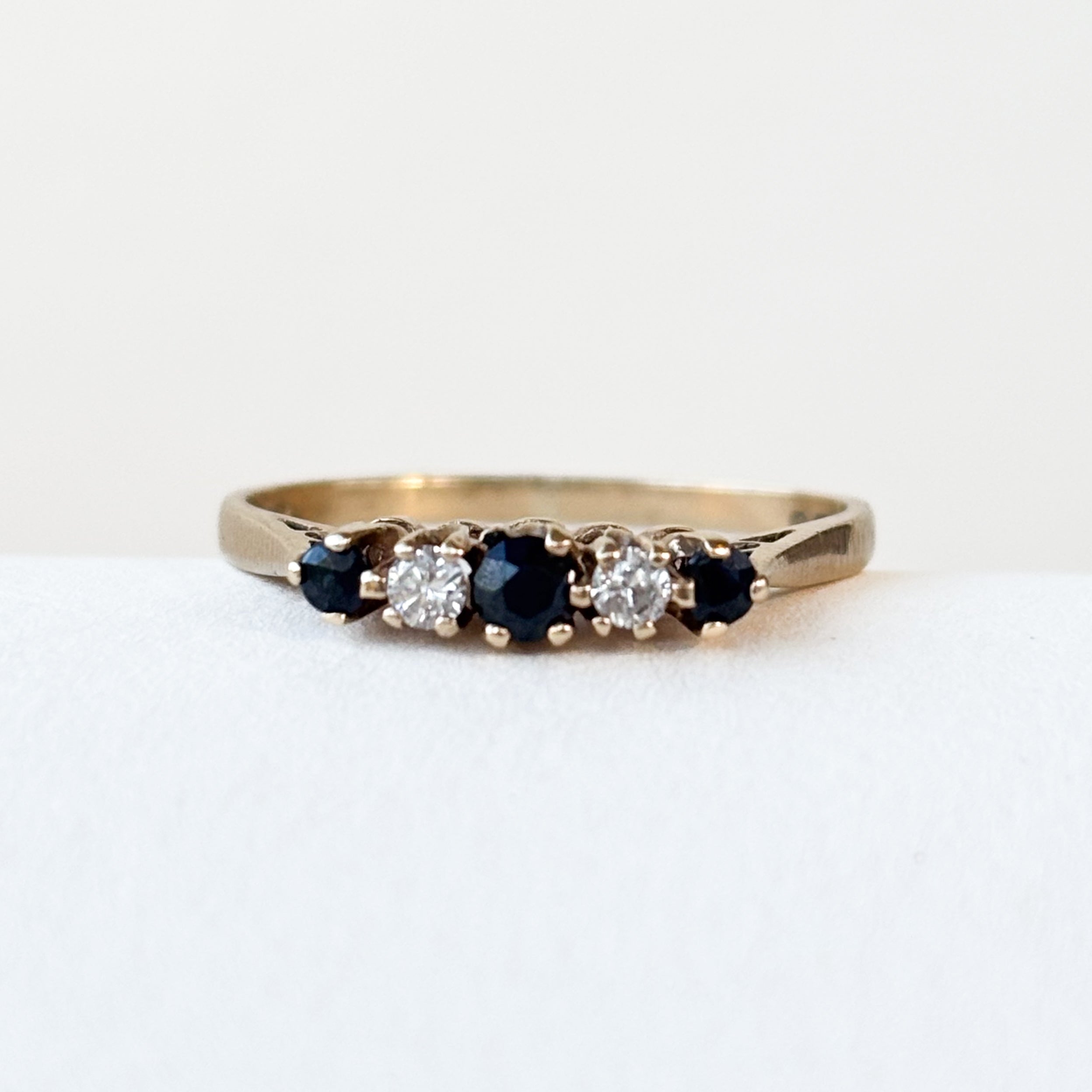 Diamond & Sapphire Ring | 9ct Gold | Size N | 1.41g