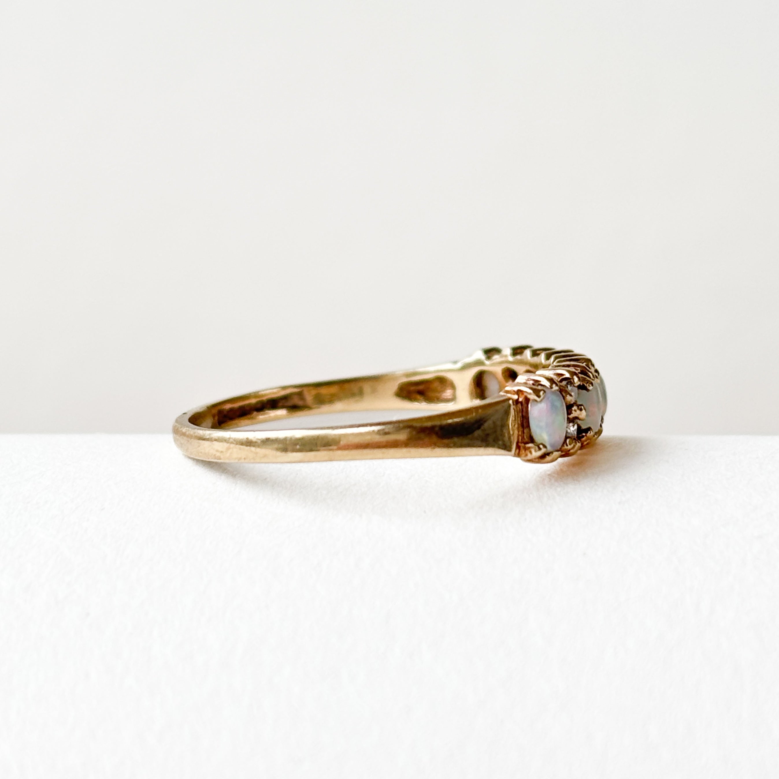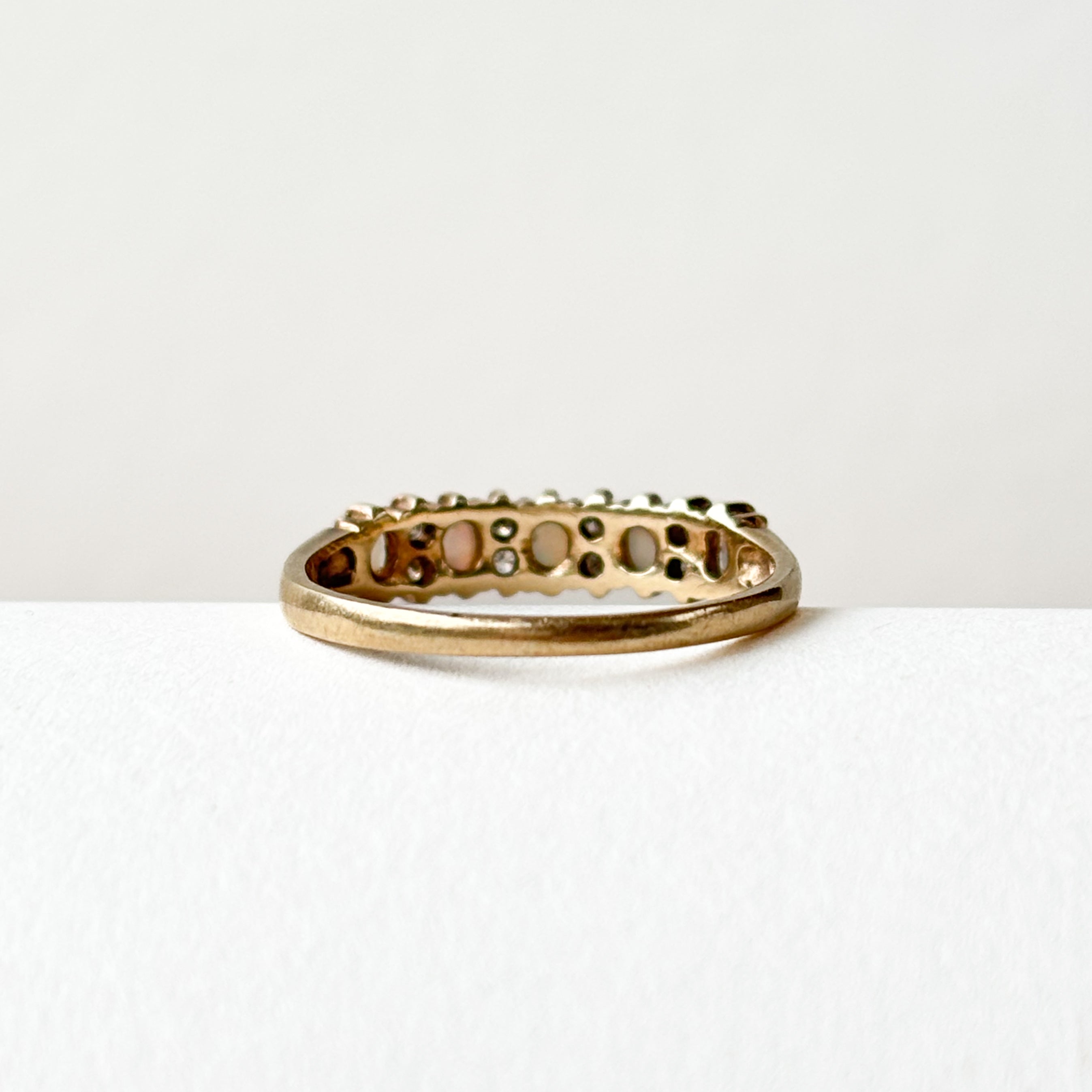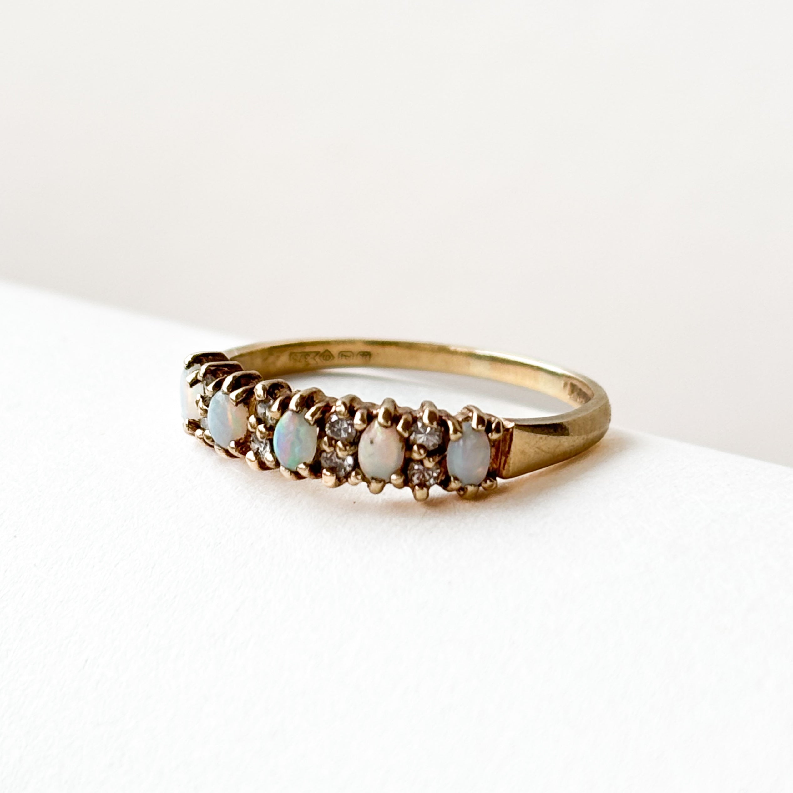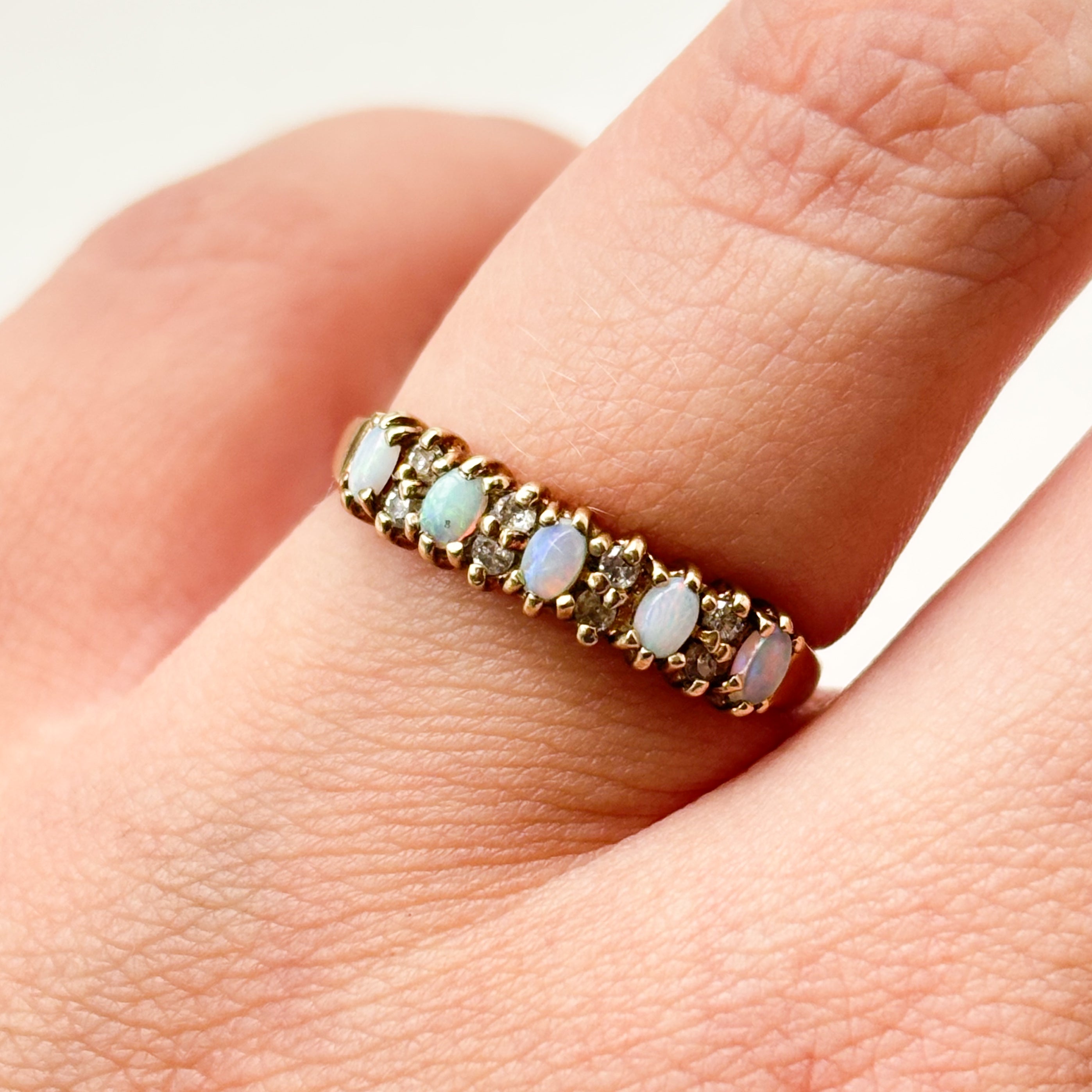 Eternity Ring | 9ct Gold | Natural Opal + Diamond | Size O | 1.56g