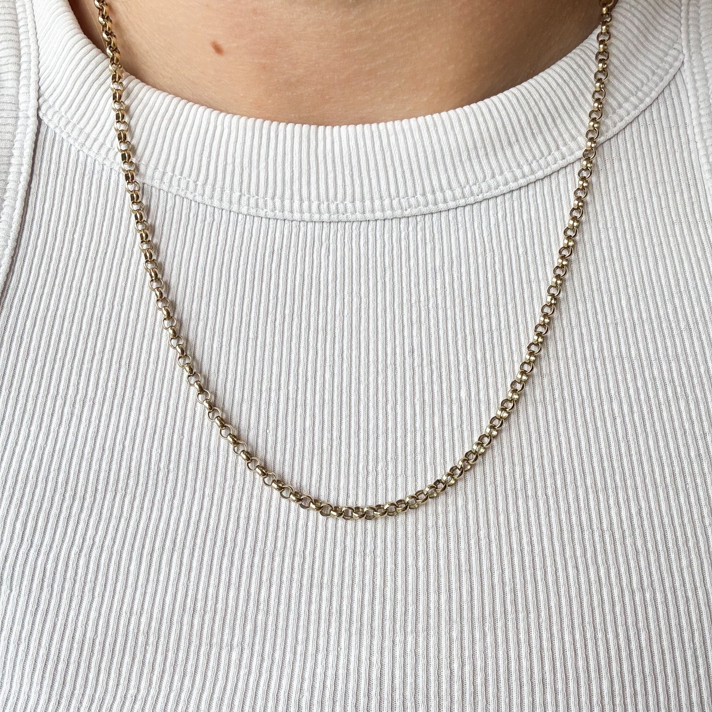 This is a Heavy Cable Link (or Rolo Link) chain that epitomises classic gold luxury. The links are beautifully rounded and substantial, creating a smooth, fluid drape that looks incredible on the neck. It's got a satisfying, weighty presence that makes it feel instantly high-end—you can literally feel the quality.