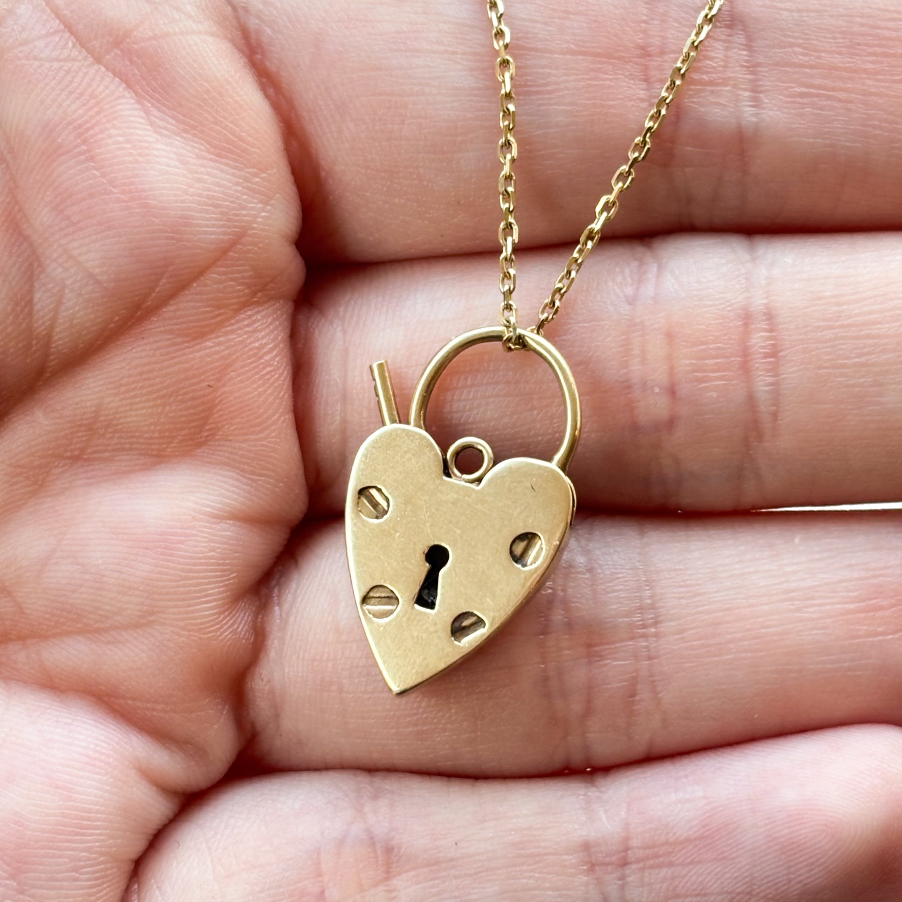 Long Heart Lock (2cm × 3cm, 2.49g) | 9ct Gold | 18" Fine Cable Link Chain