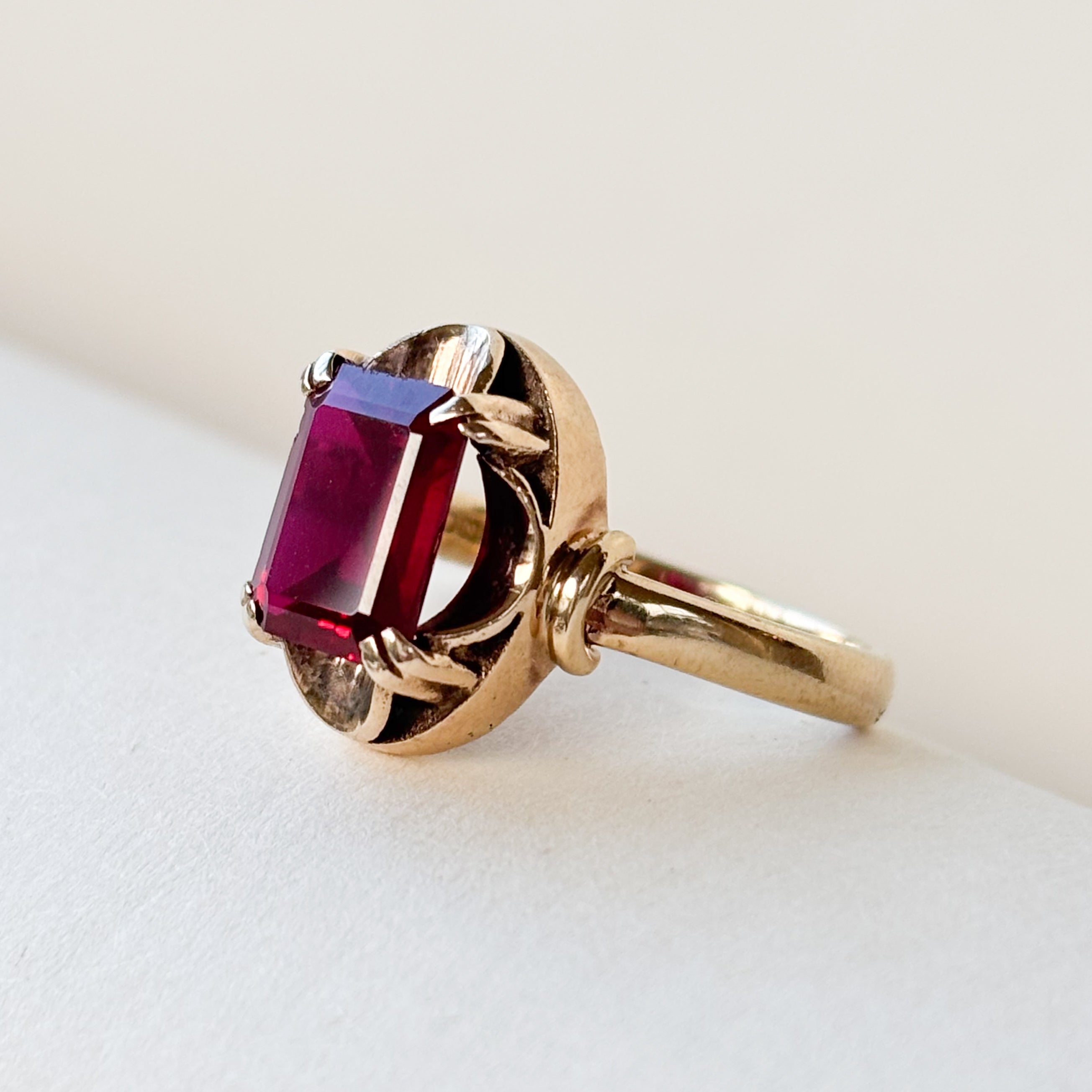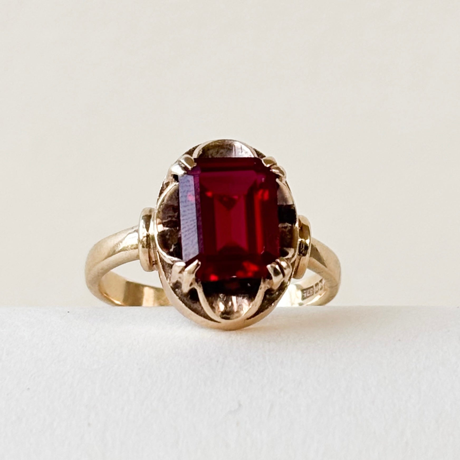 Synthetic Ruby Deco Shoulders | 9ct Gold | Size M | 3.62g