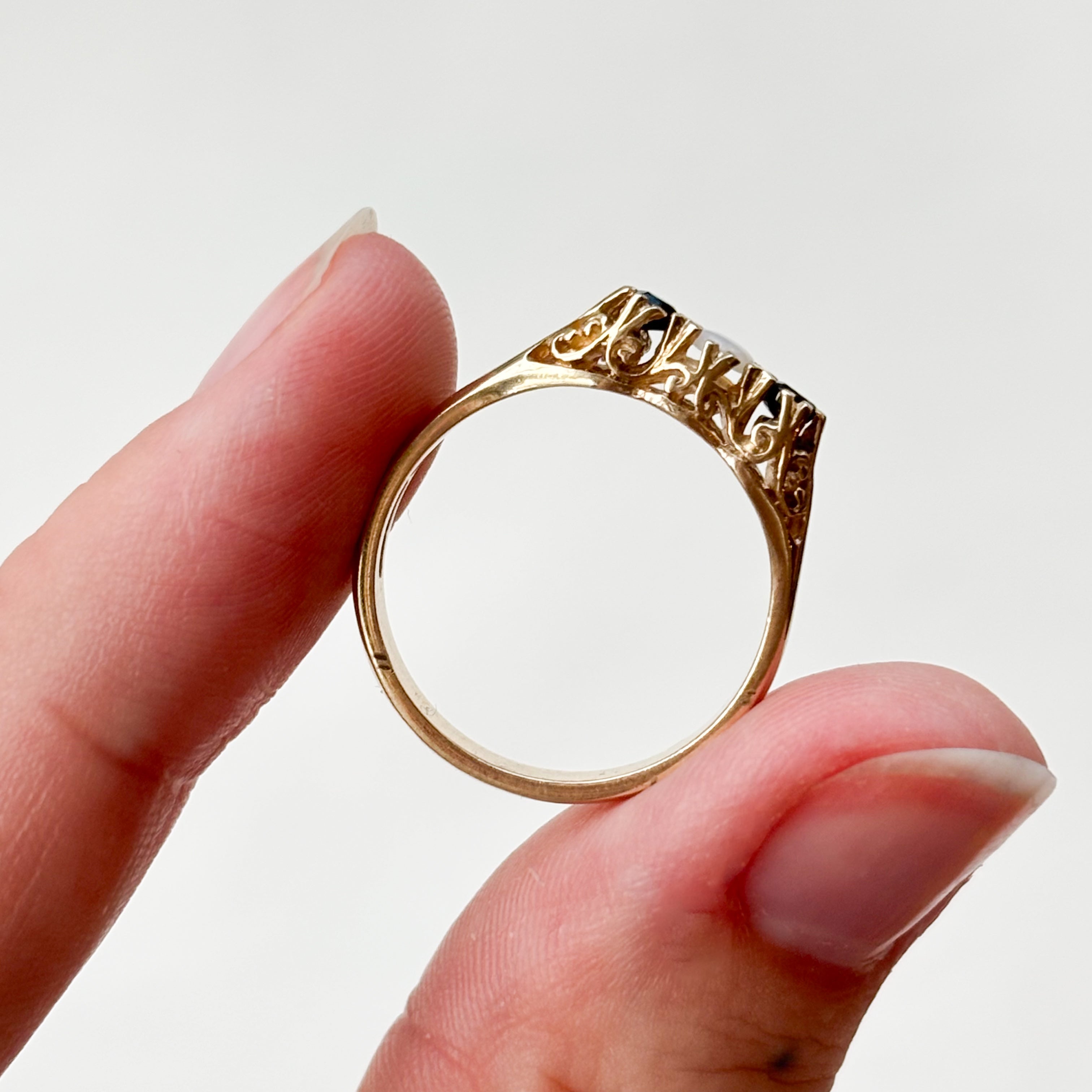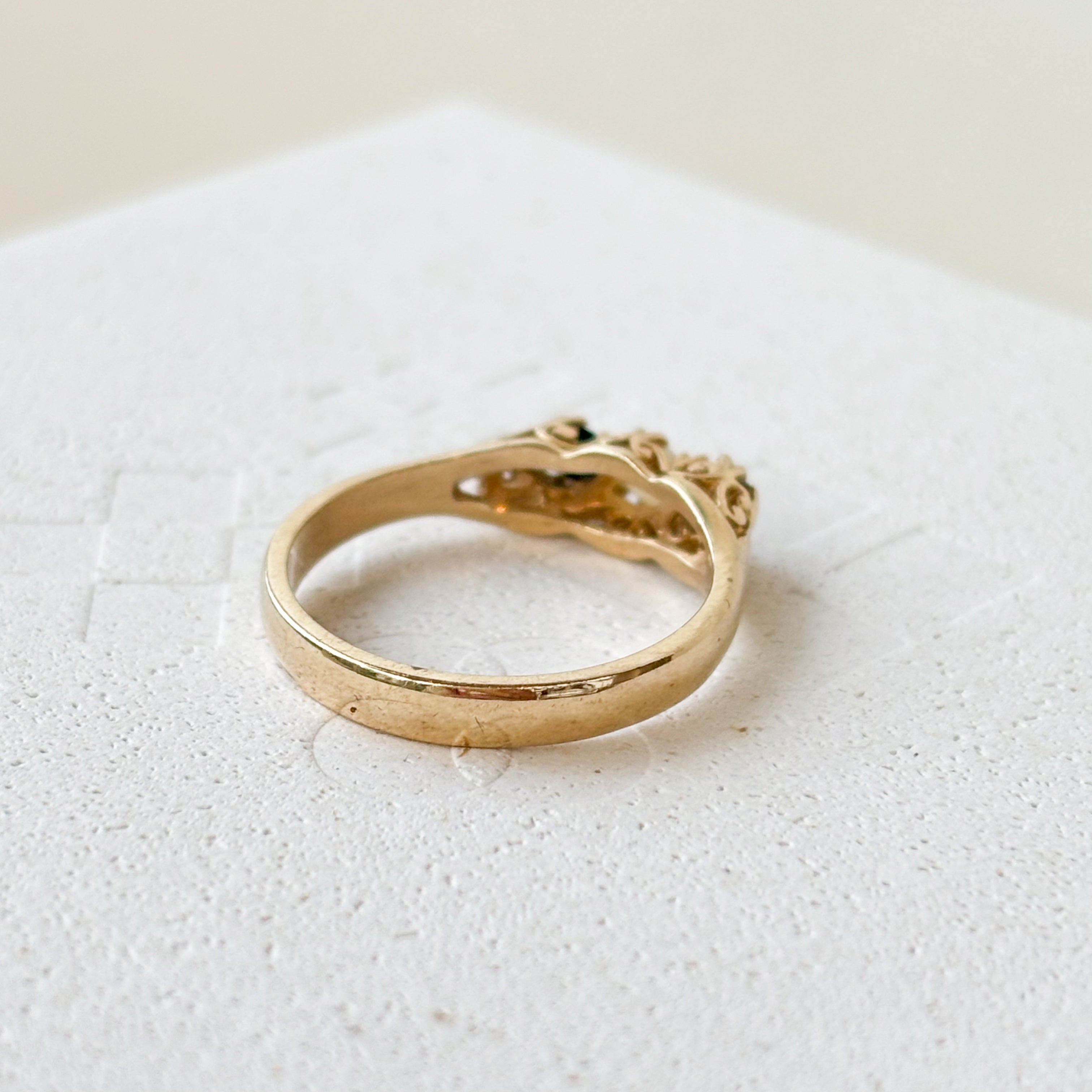 It’s set in rich, buttery 9ct Gold and feels utterly substantial. At a phenomenal 2.80g and Size O, she is heavyyy and provides a high-quality, dense feeling. The setting itself is beautifully sculpted, allowing the light to hit the stones from every angle.