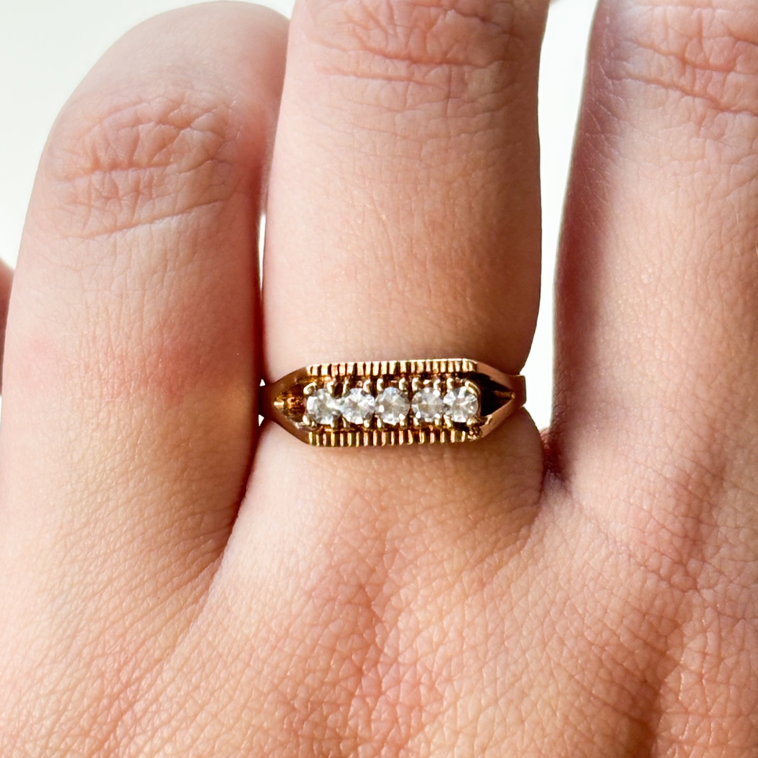 Razor Signet CZ | 9ct Gold | Size Q | 2.77g