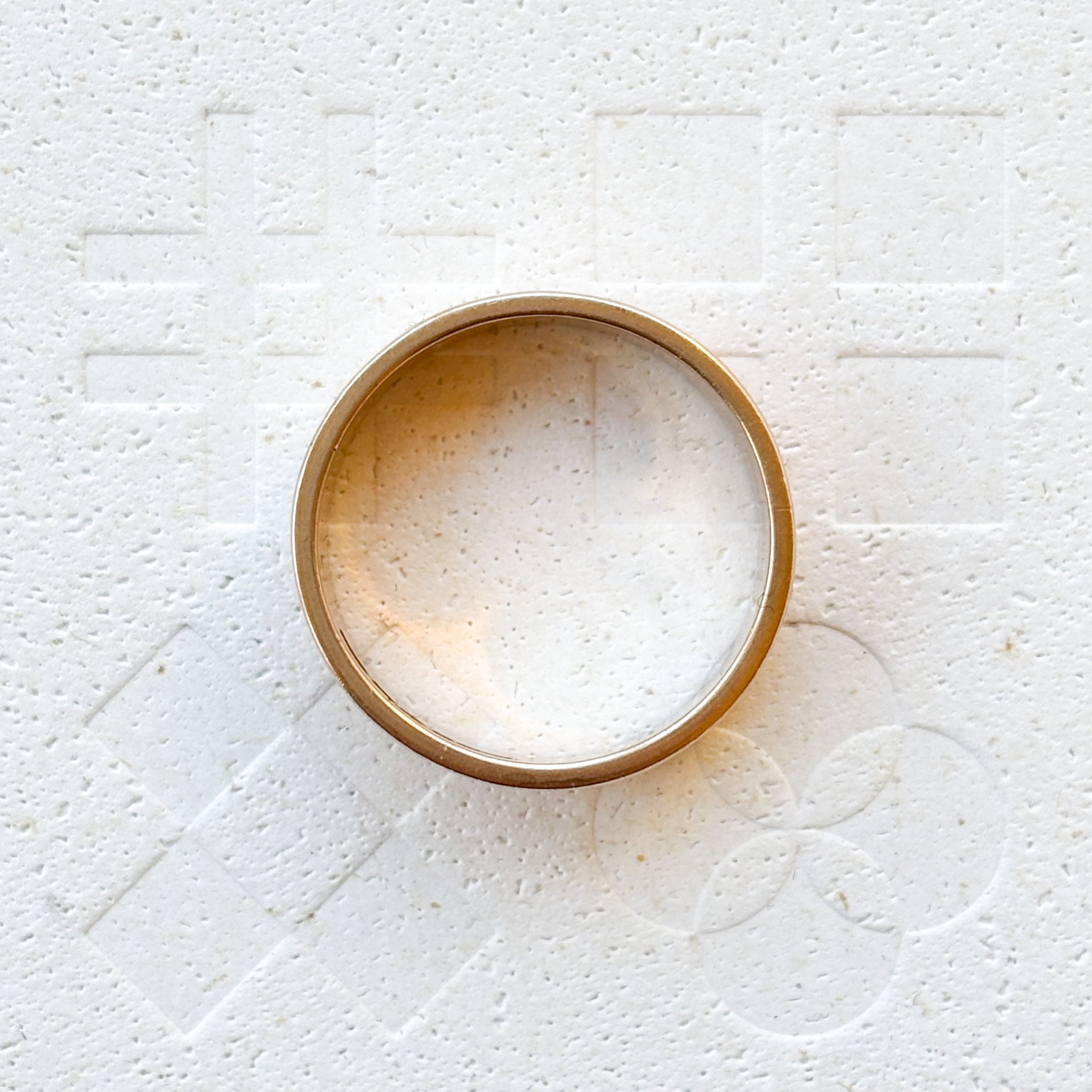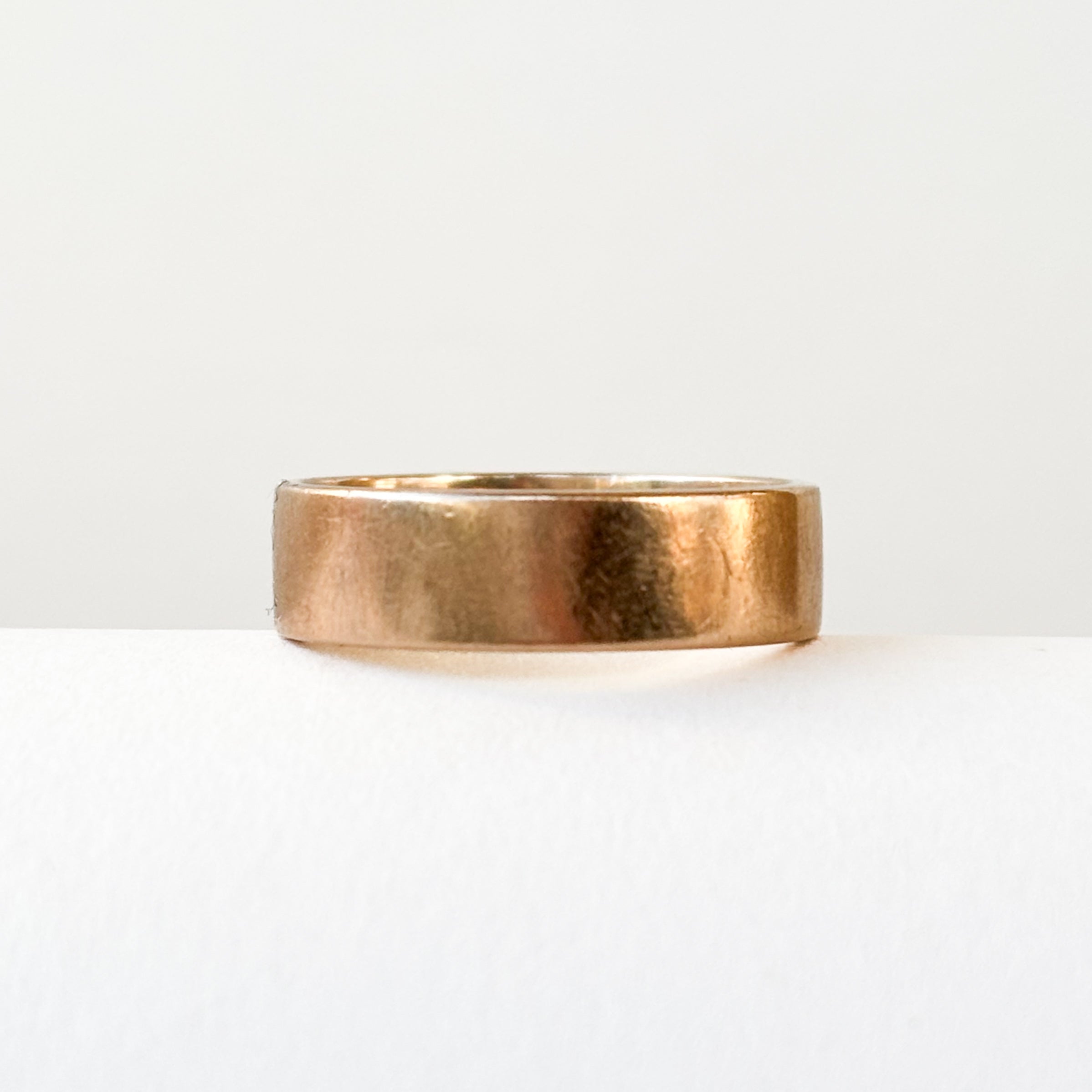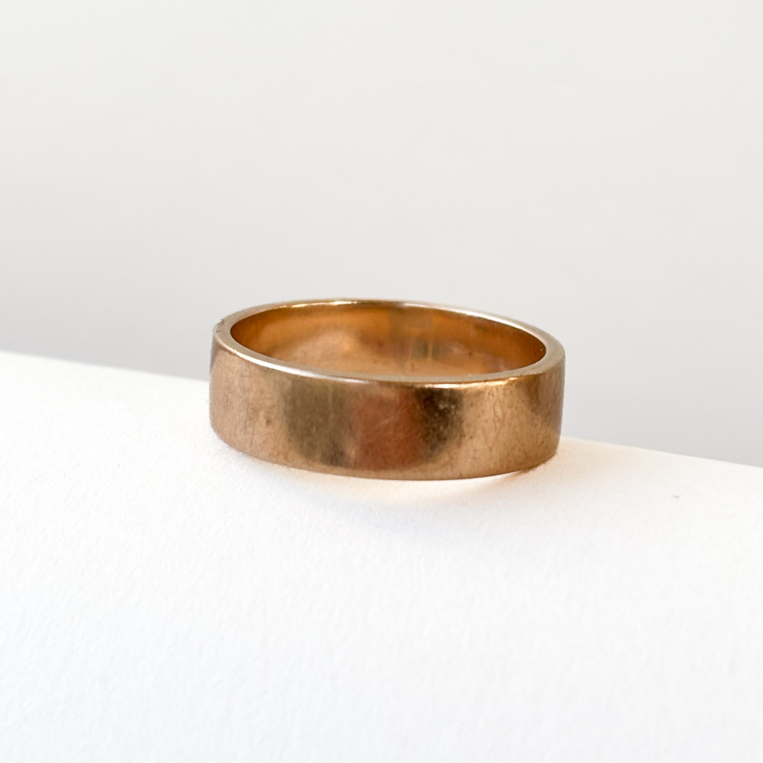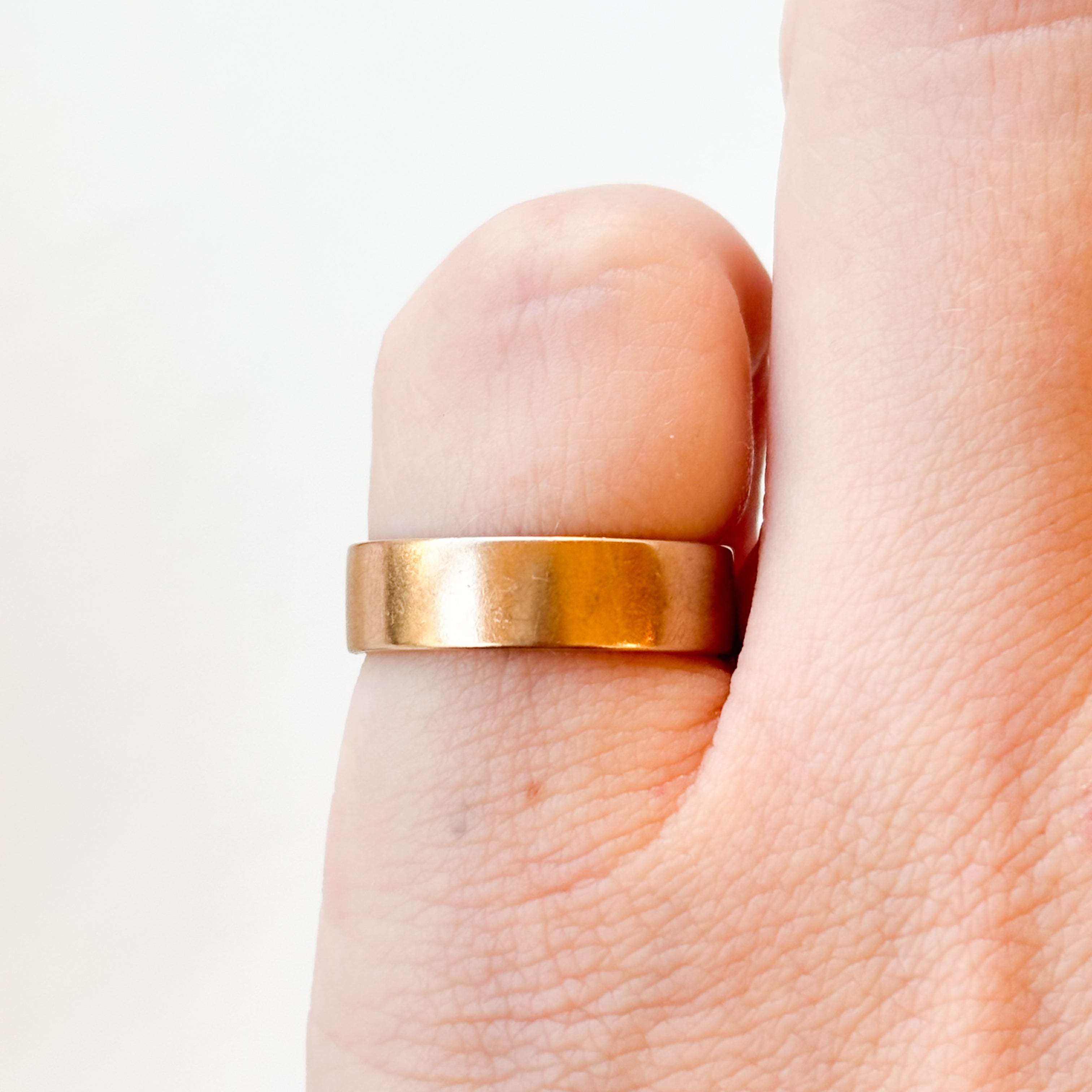 It features that subtle, beautiful rose gold hue, giving it a warm, vintage feel that is just so chic. It's perfectly smooth, polished, and ready to be worn as an understated statement piece, a wedding band, or a fantastic, solid stacking companion.
