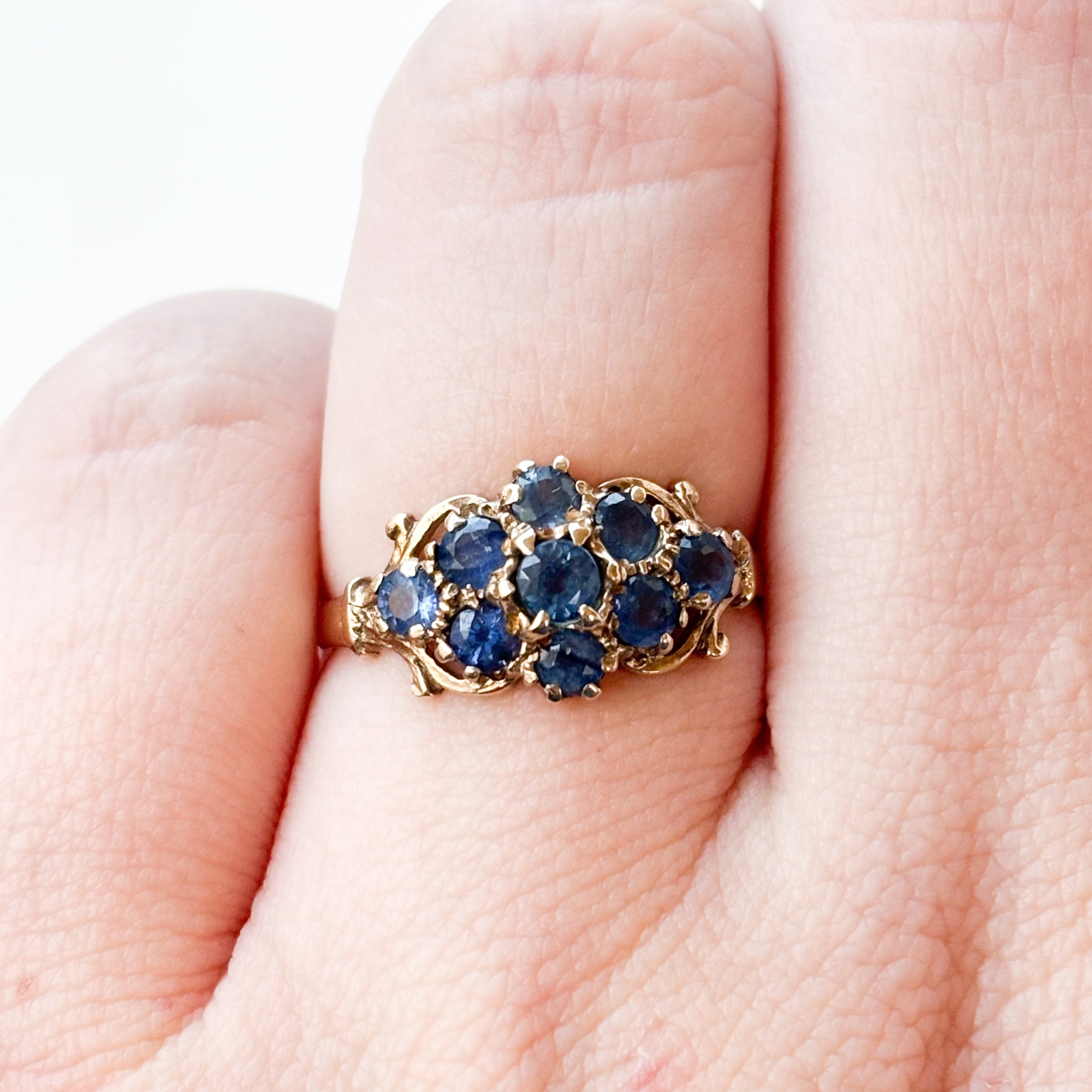 Sapphire Cluster | 9ct Gold | Size M½ | 1.77g