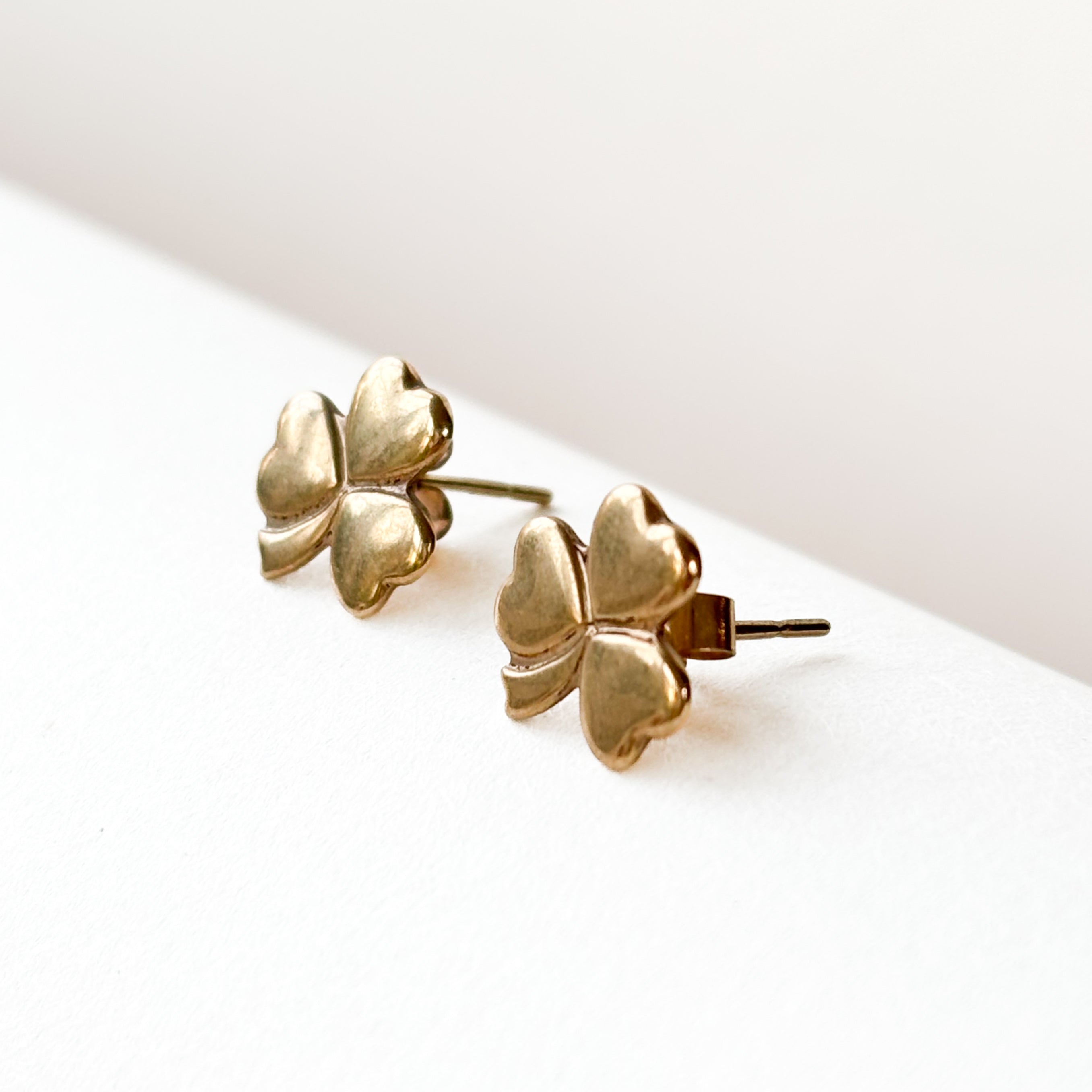 These are the most perfectly formed little gold shamrock studs. They are pure, charming, and bring a fantastic bit of Irish luck right to your ear stack.