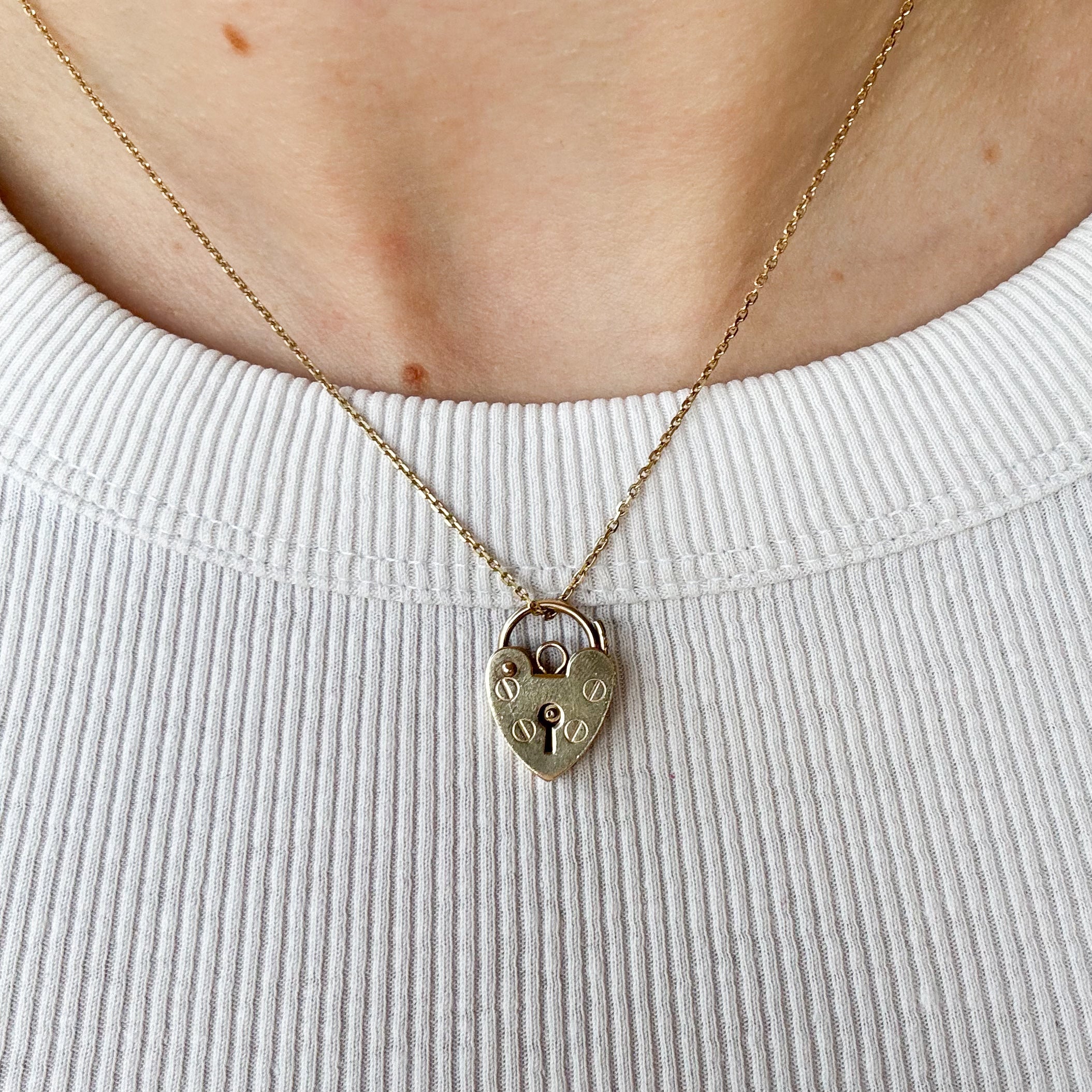 Medium Heart Lock (1.4cm × 2cm, 1.53g) | 9ct Gold | 18" Fine Cable Link Chain