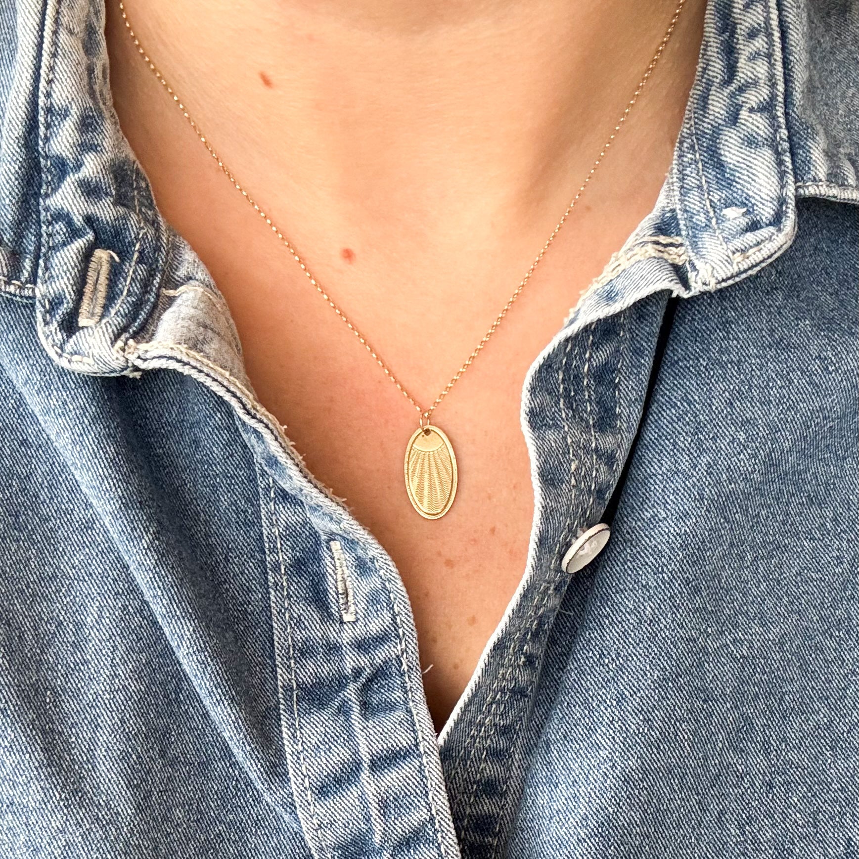 The oval shape is effortlessly chic, offering a vintage vibe that feels utterly modern when worn as a necklace.
