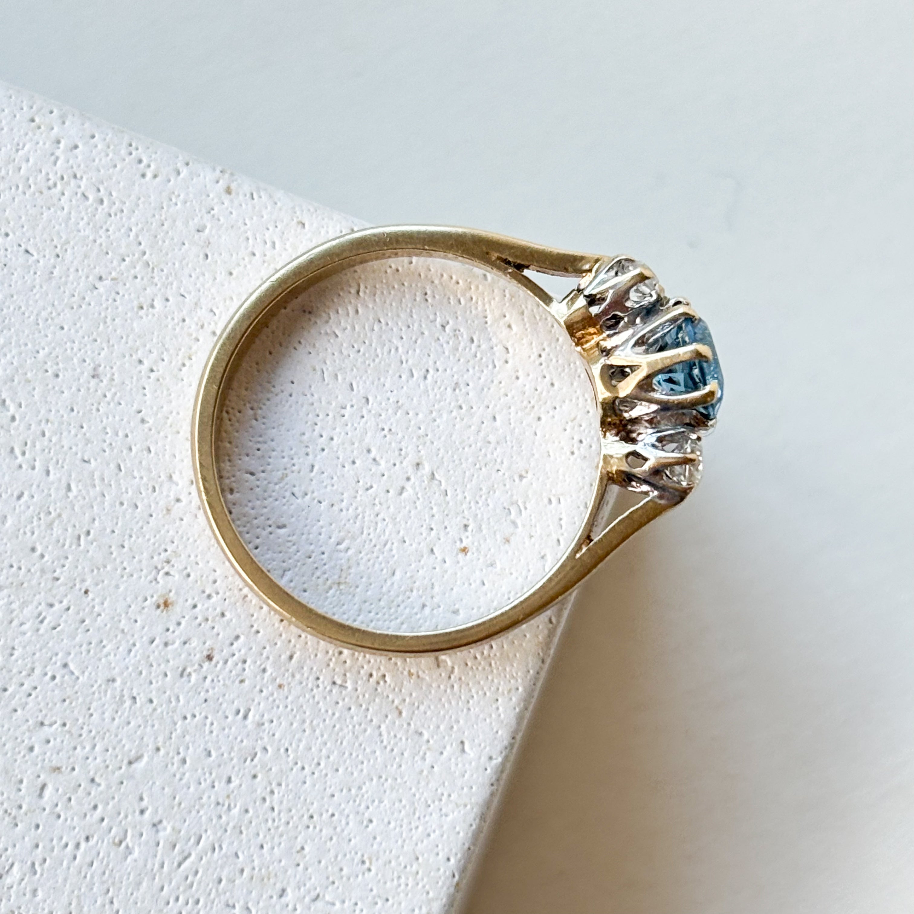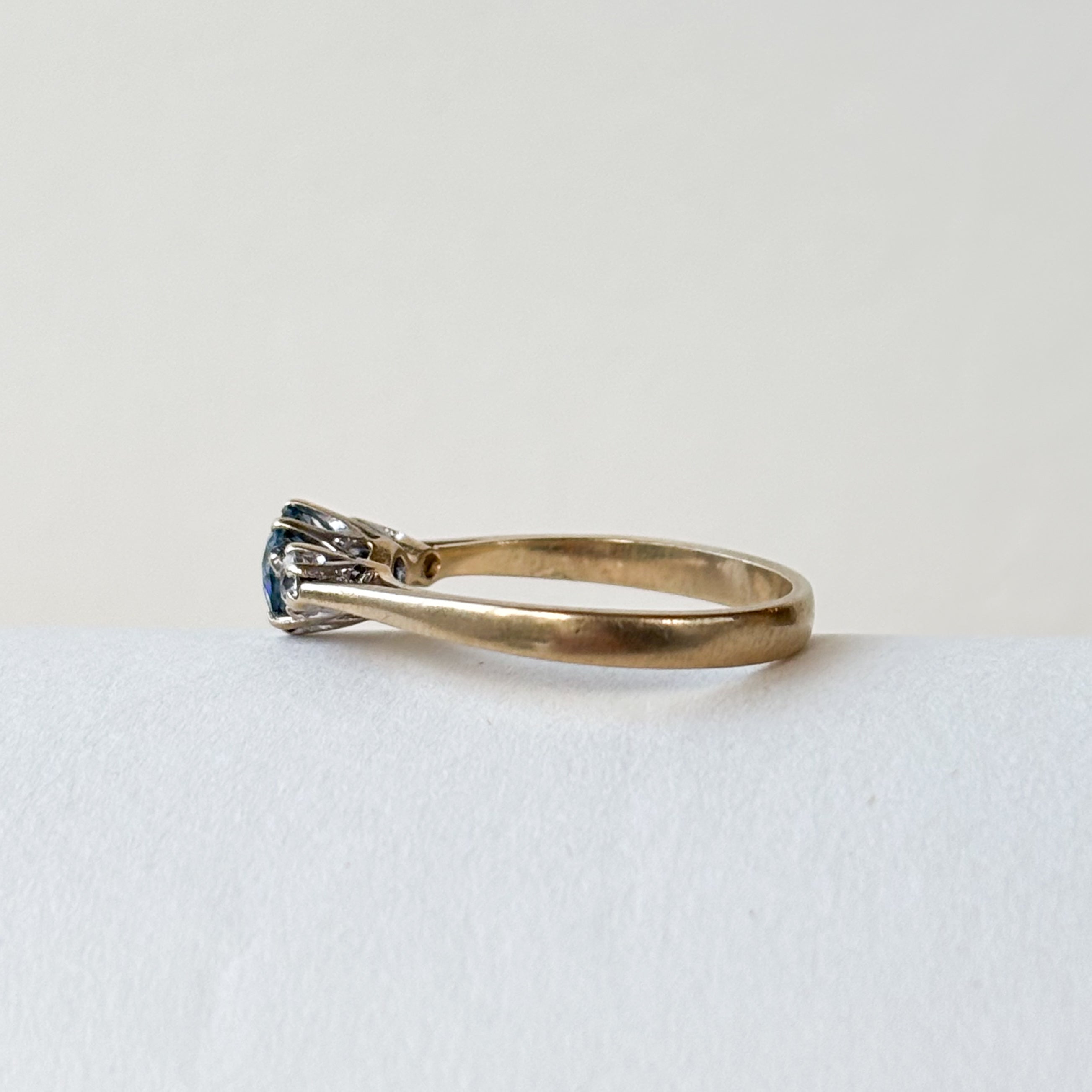 The stones are held securely by classic claw prongs, giving the ring that beautiful vintage character and allowing the light to hit those facets perfectly.