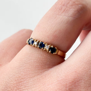 Natural Diamond and Sapphire Half Eternity | 14K Gold | Size N½ | 1.8g