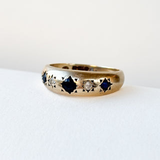 Sapphire & diamonds Starburst Ring | 9ct Gold | Size M | 2.62g