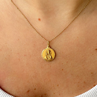 Two-Side Jesus and Madonna and child | 18ct Gold | 1.5cm | 18 inch fine cable link chain 9ct