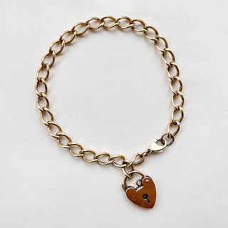 Curb Chain Bracelet with Heart Lock | 9ct Gold | 9.41g | 7.6in