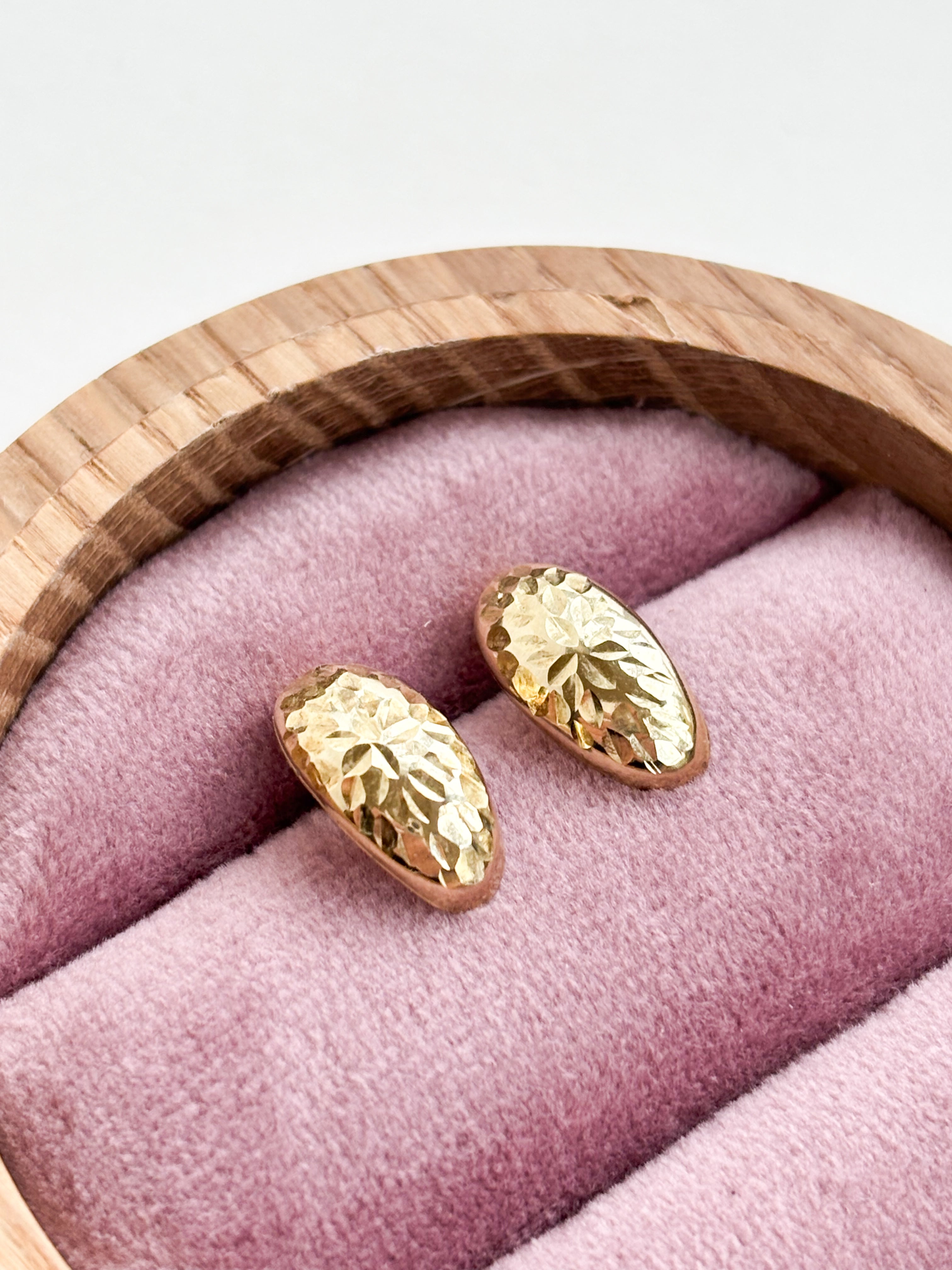 These 9ct gold studs are the ultimate "cool girl" essential. We are obsessed with this textured, starburst-style finish—it catches the light like a dream and gives these ovals a serious glow that plain gold just can't match.