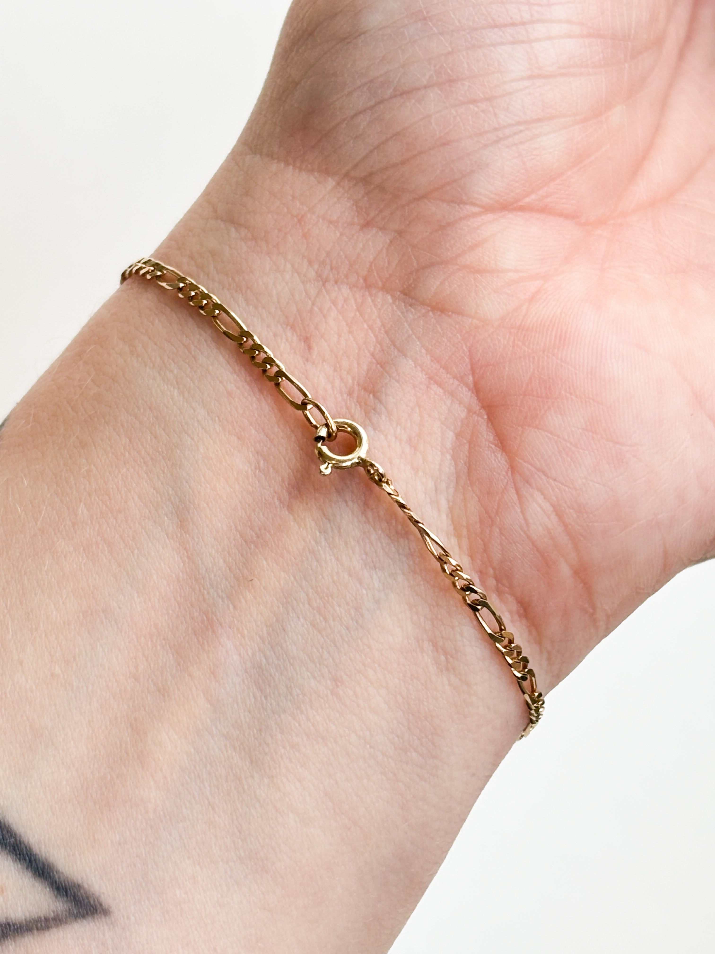 This upcycled 9ct Gold Figaro is another brilliant find that we’ve reimagined from a chain into a must-have wrist essential. At 1.38g and 7 inches, it brings that same effortlessly cool Italian texture to your stack.
