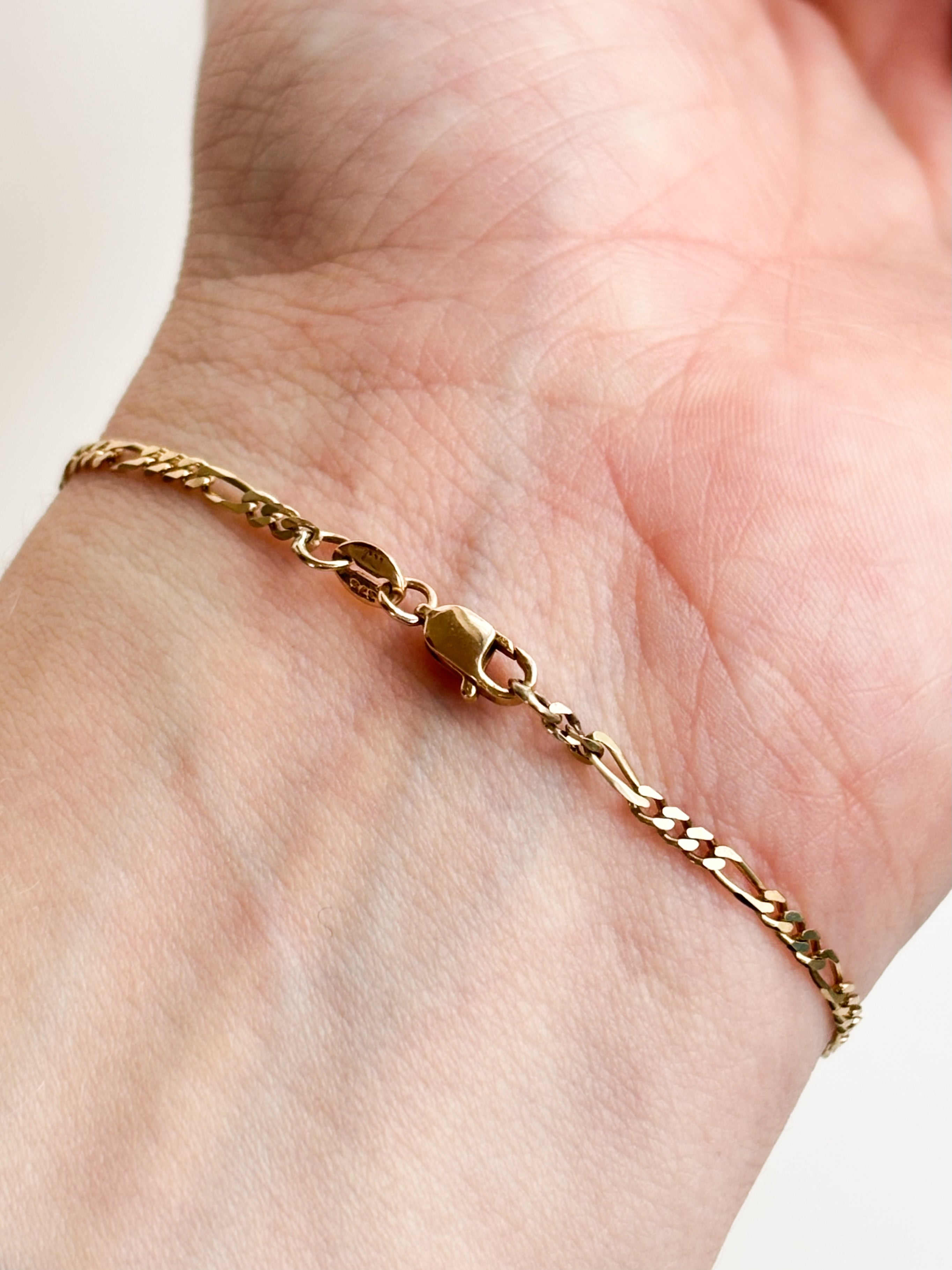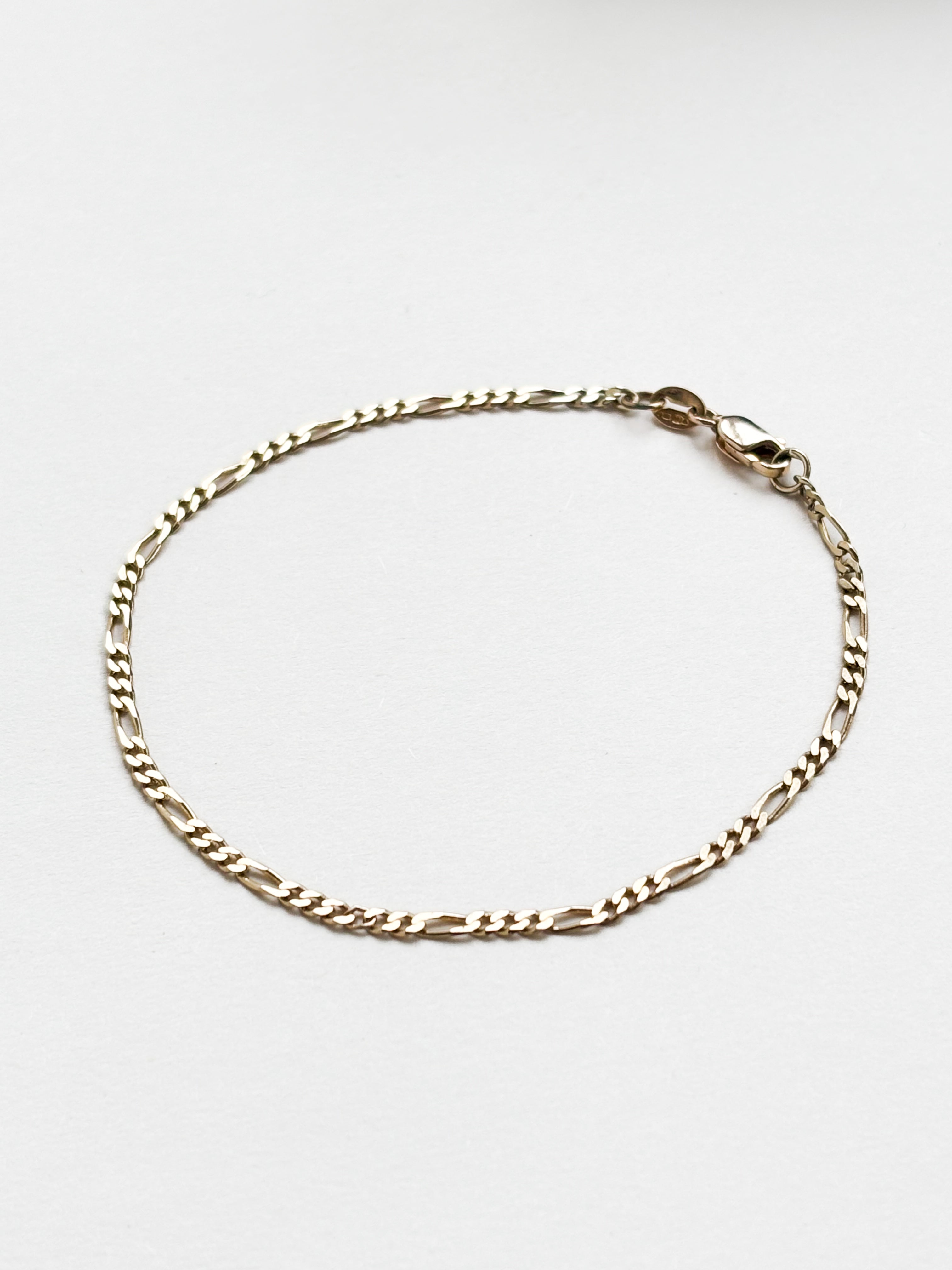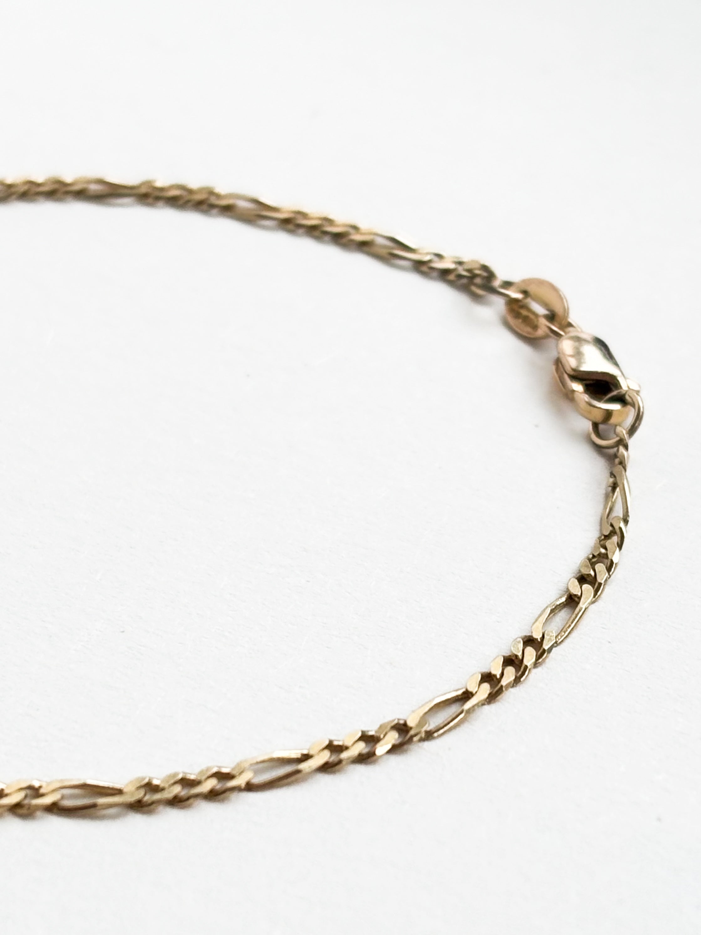 This upcycled 9ct Gold Figaro is a total vibe. We originally found this as a chain, but we just knew it belonged on your wrist—so we transformed it into the perfect stacking bracelet.