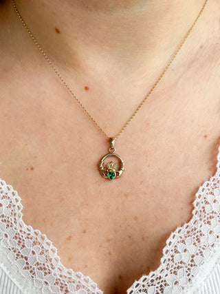 Claddagh Charm | 9ct Gold | Green Stone | 18-Inch Fine Cable Link Chain | 3.75g
