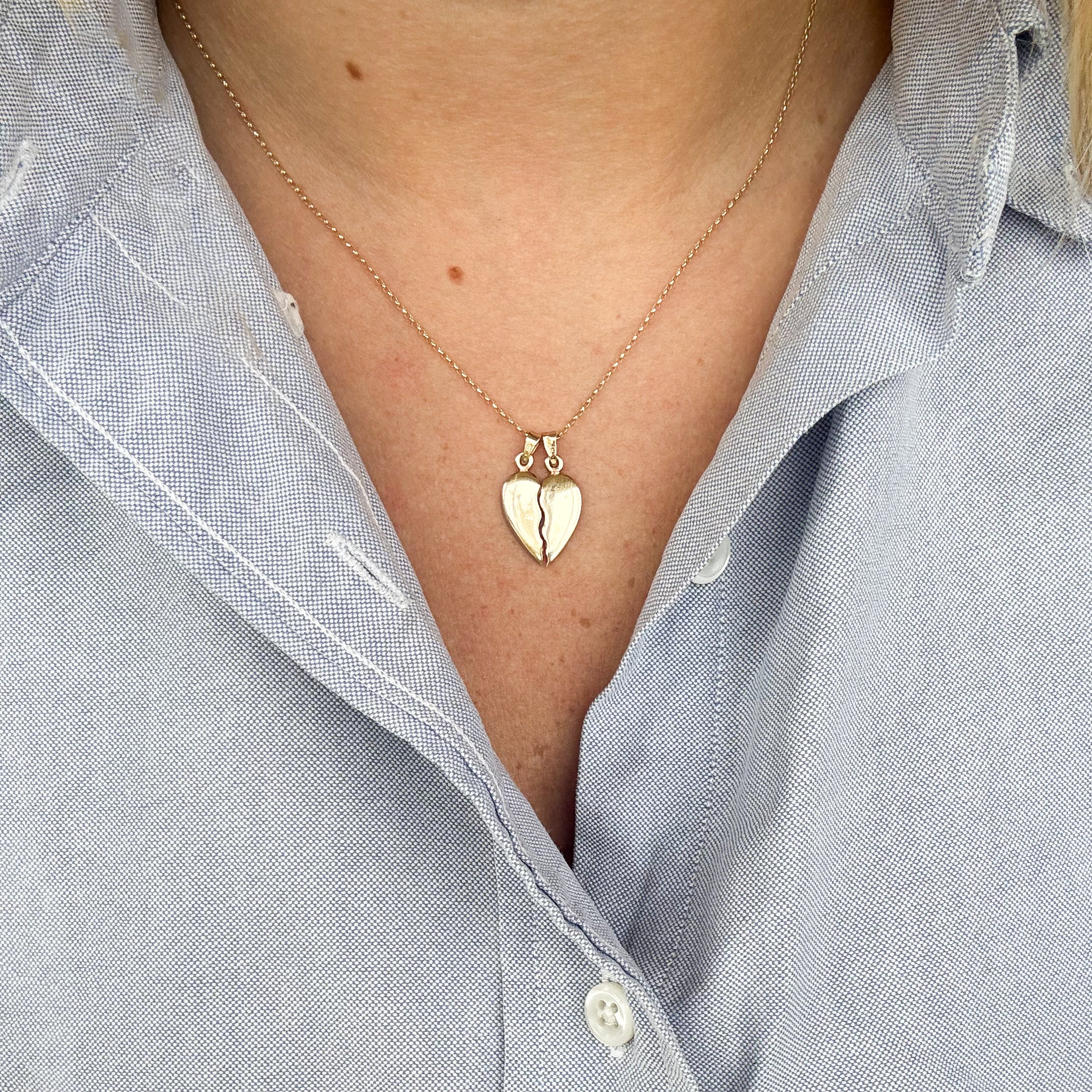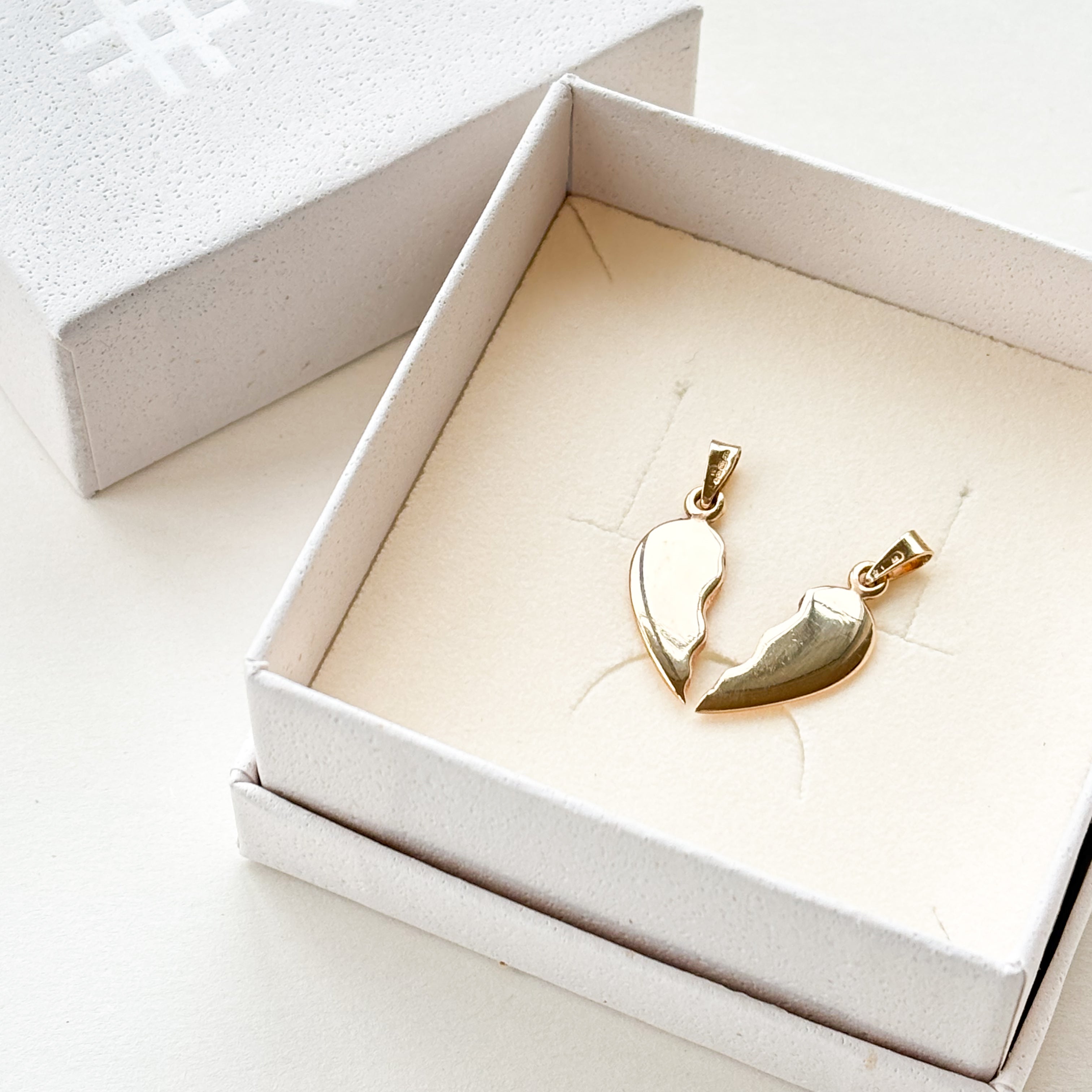 This one’s perfect to match with your love. A parted heart pendant in solid 9ct gold, hanging from an 18-inch cable link chain and weighing 3.40 — sleek and built to last. The smooth surface is ideal for engraving, so you can make it personal or gift it to someone special.
