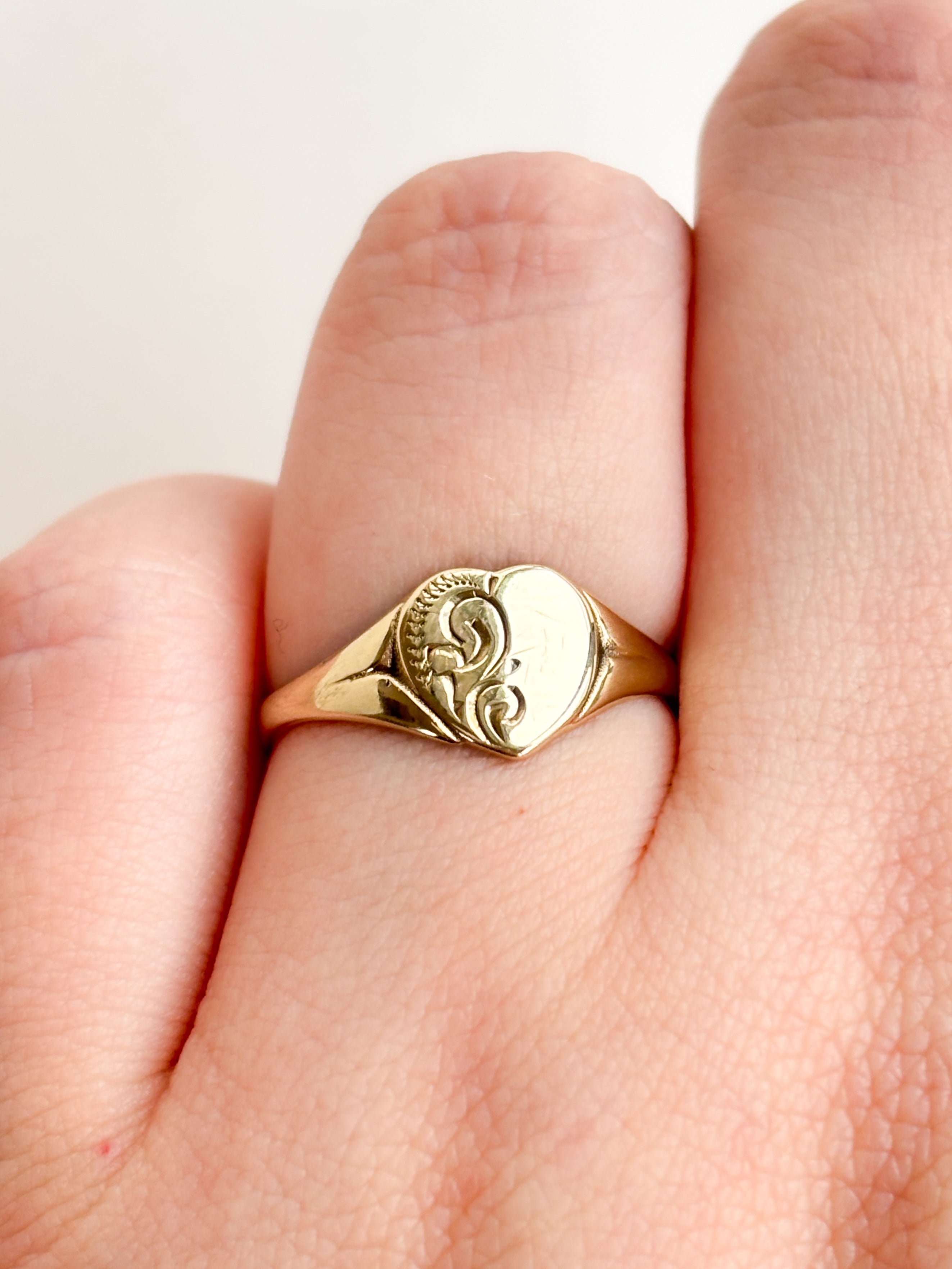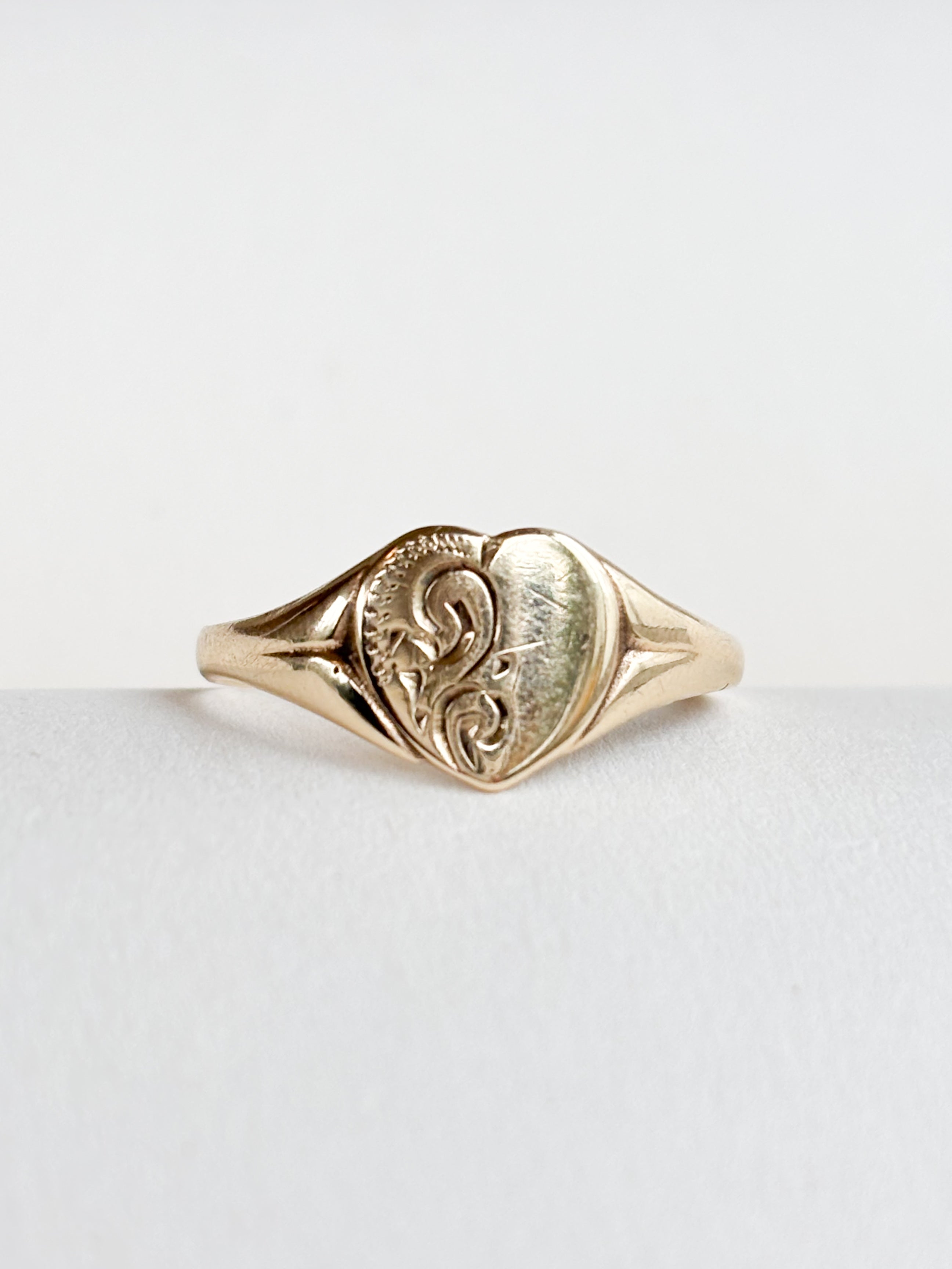 Heart Signet Ring (Engraved) | 9ct Gold | M1/2 | 1.28g