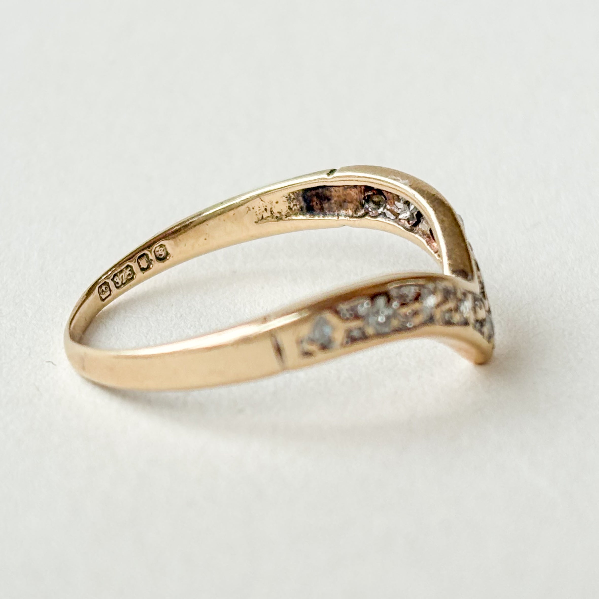 Diamond Chevron Ring | 9ct Gold | Real Diamond | Size N½ | 1.59g