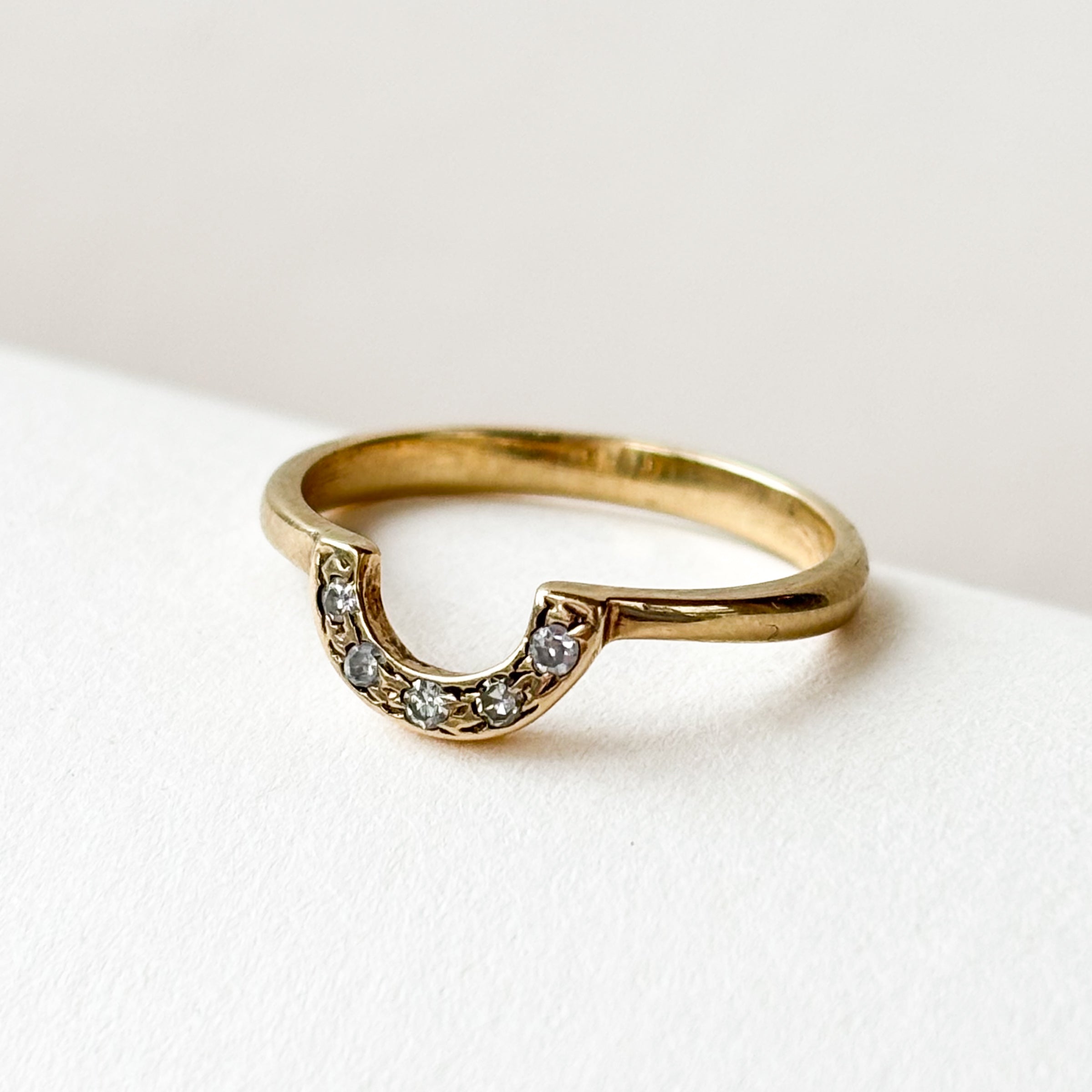 Diamond Cresent Ring | 9ct Gold | Real Diamond | Size K½