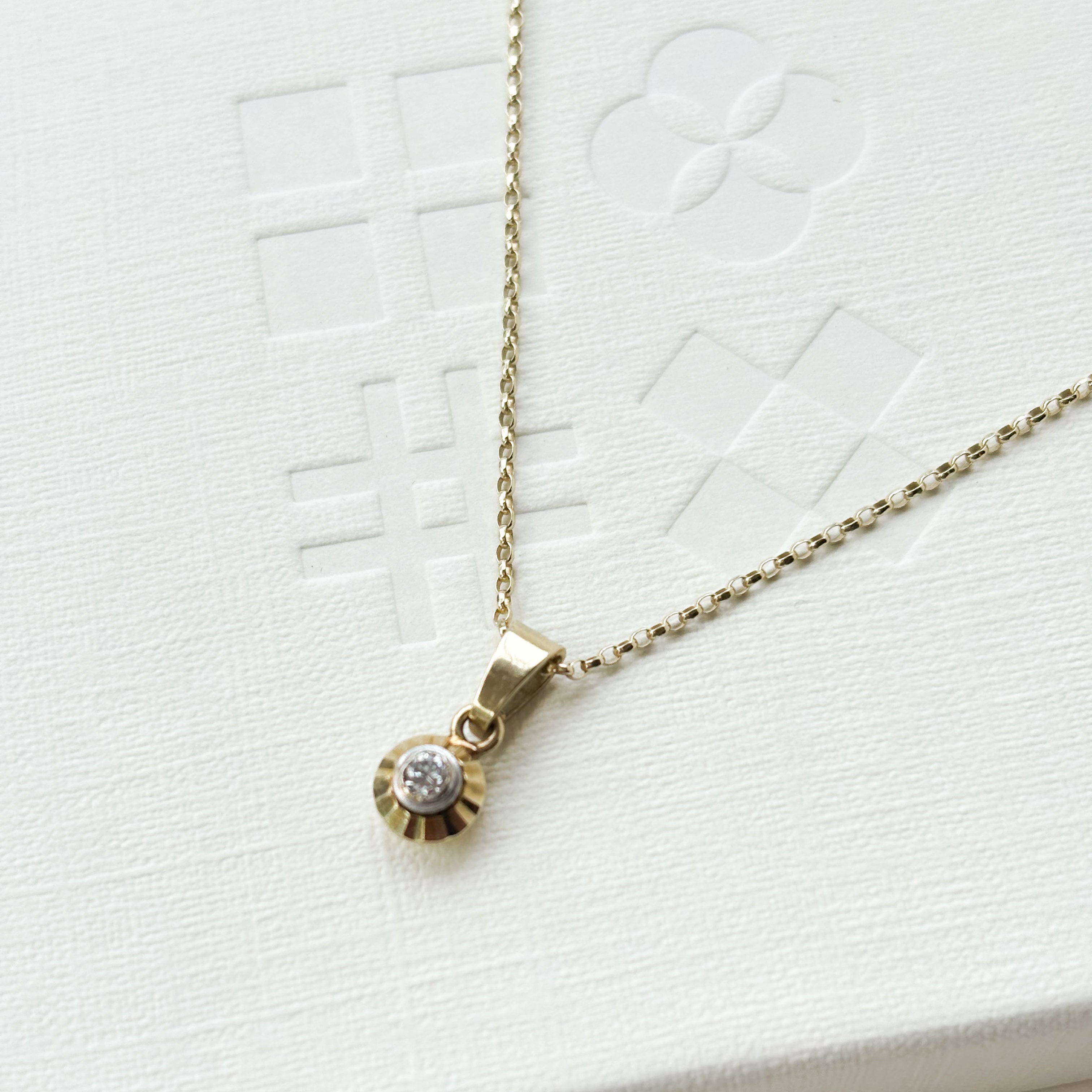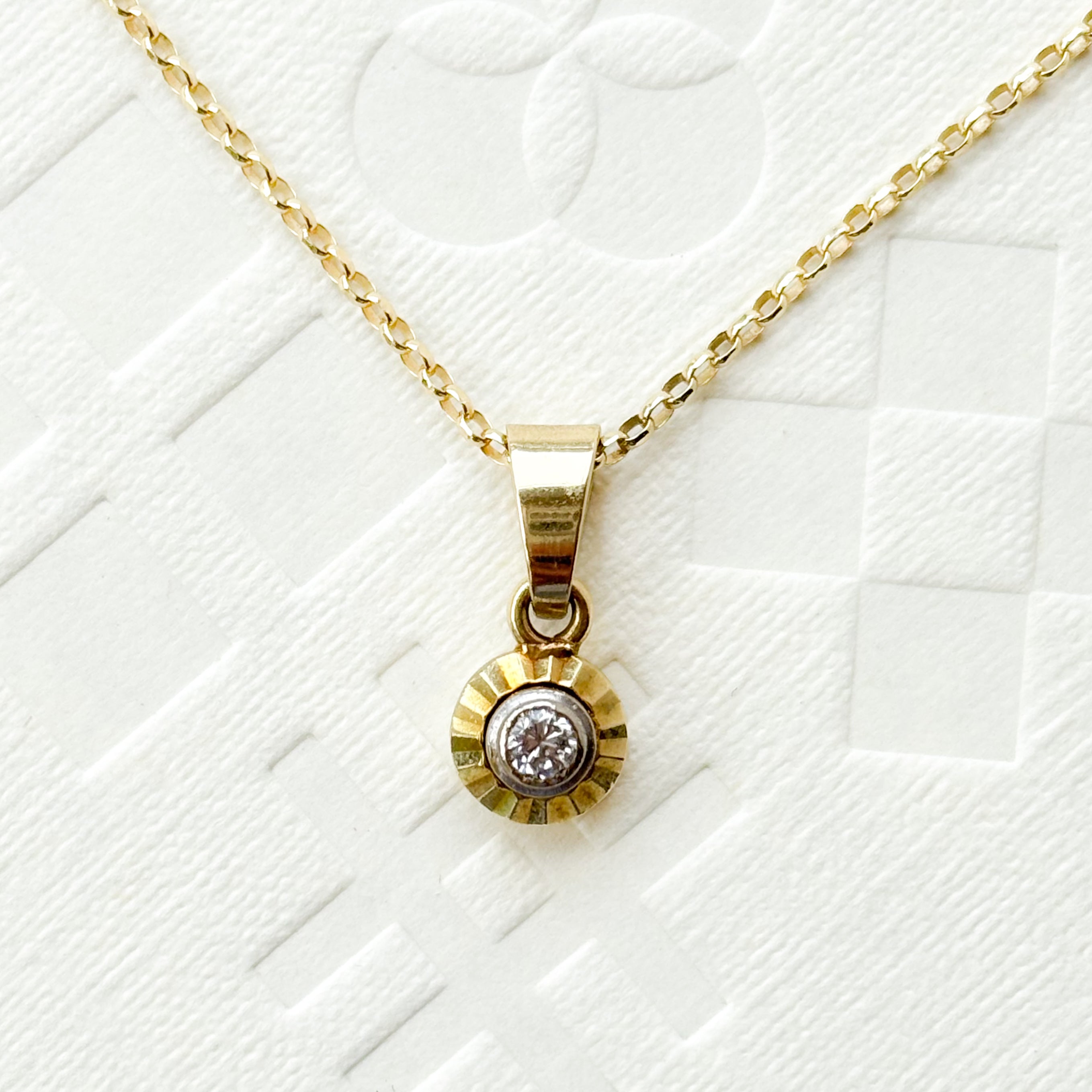 A diamond necklace done right. This 14ct gold solitaire sits on an 18-inch fine cable link chain, weighing 1.95g. The natural diamond sits in a subtle starburst-style pendant, catching the light and letting it shine.