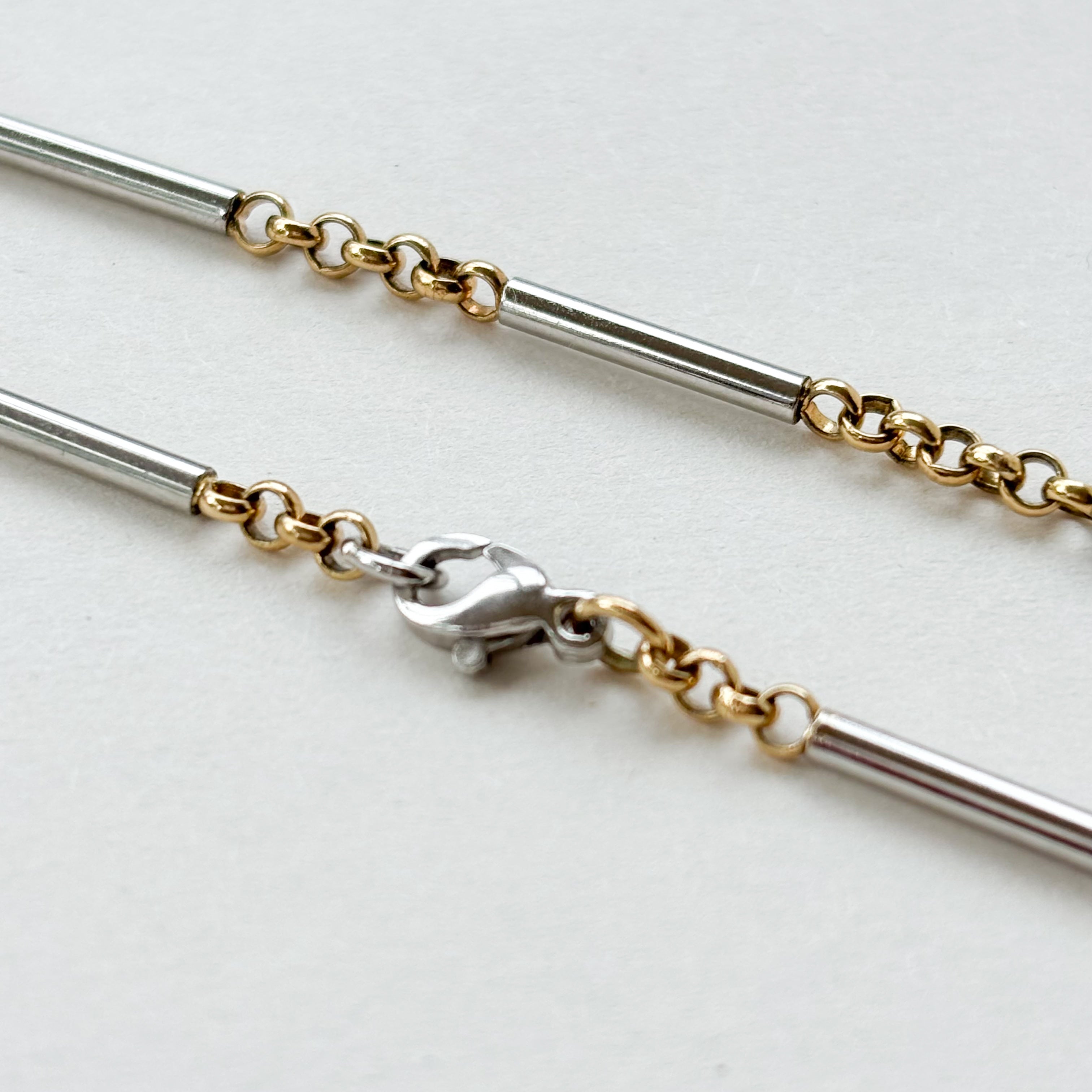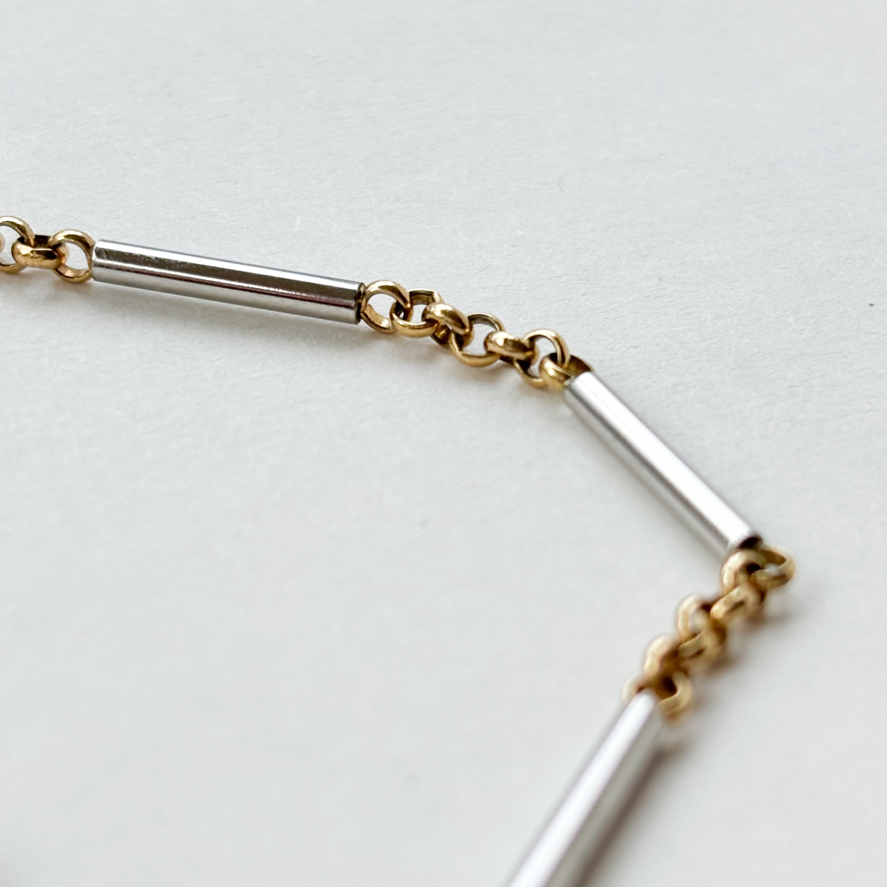This one’s really something special. A 9ct gold two-tone bracelet, weighing 5.62g !! The contrast between the solid white gold bars and the yellow gold links is what really makes it stand out, giving it that mix of texture and tone that feels both modern and timeless.